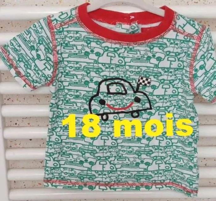 Tee  shirt  manche  courte  rouge  vert  motif  voiture  noir  Tissaïa  Taille  18 mois - photo numéro 1
