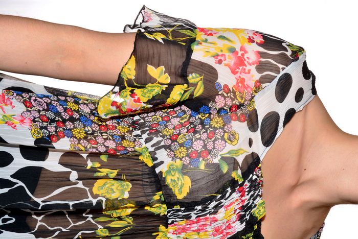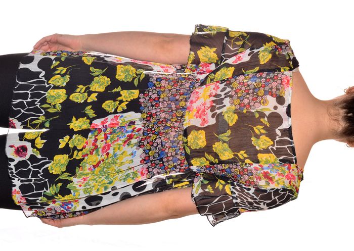 longue blouse manches courtes fluide noire multicolore col carré élastiquée transparenceT38 - photo numéro 4