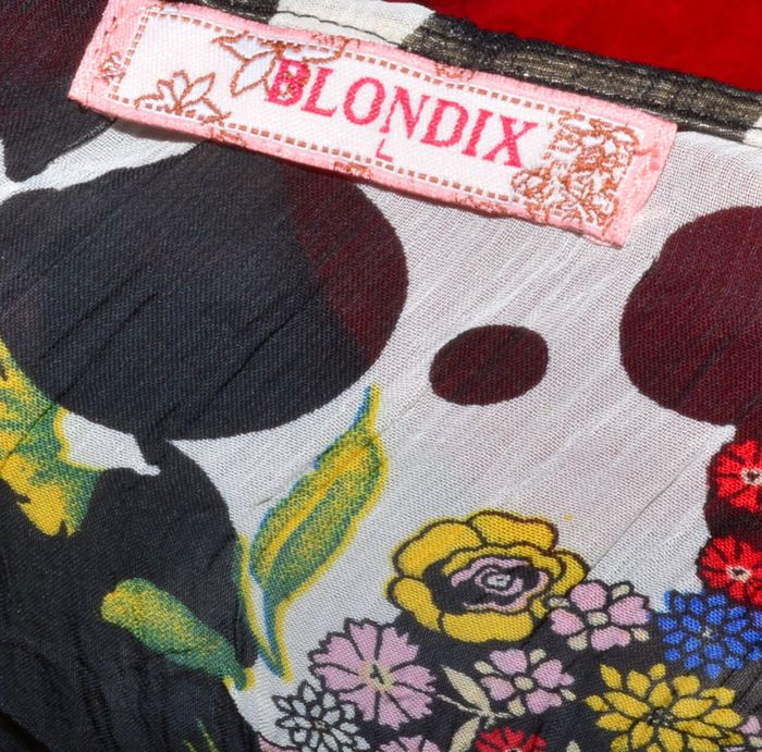 longue blouse manches courtes fluide noire multicolore col carré élastiquée transparence T38 épaule à épaule 38 cm aisselle à aisselle 42 cm au niveau de la taille élastiqué au maximum 47 cm longueur 68 cm