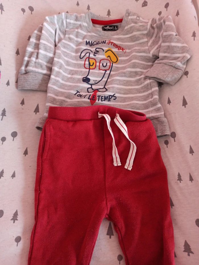 Gris et rouge chien jogging 6 mois Un peu de bouloche au pantalon #lucasandcie6mois In extenso