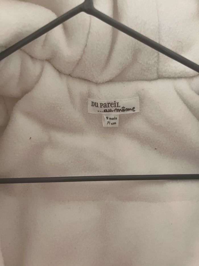 Combi 9mois toute douce pour l’hiver c’est parfait ! Marque du pareil au même Acheté neuf et porté que quelques fois