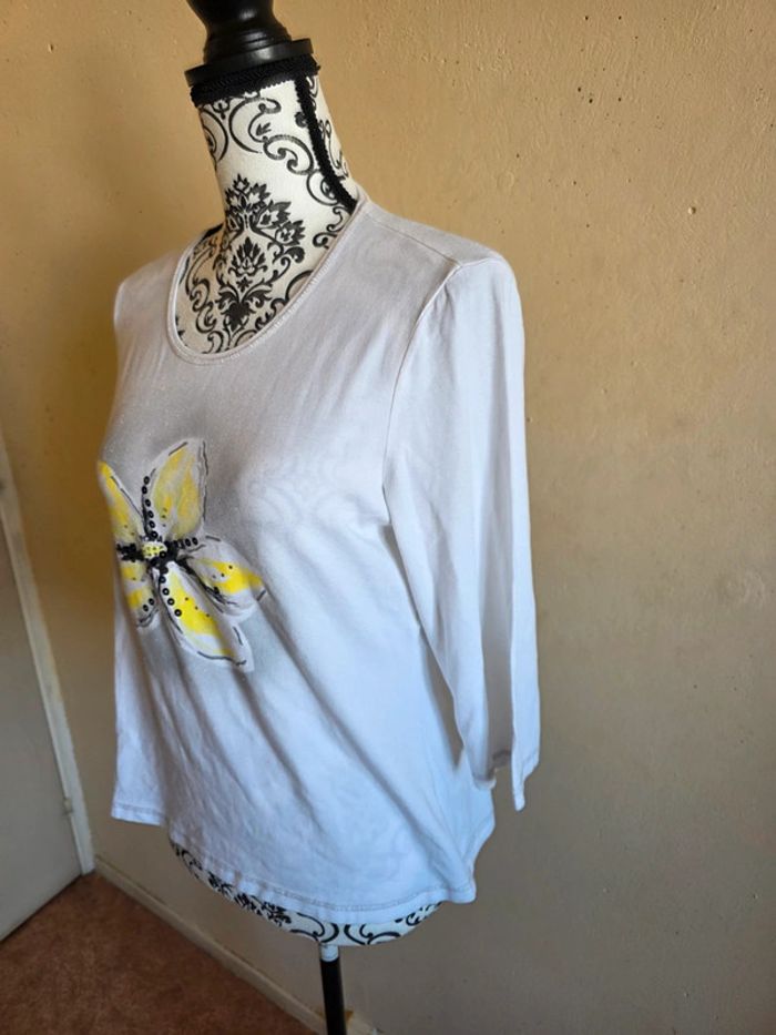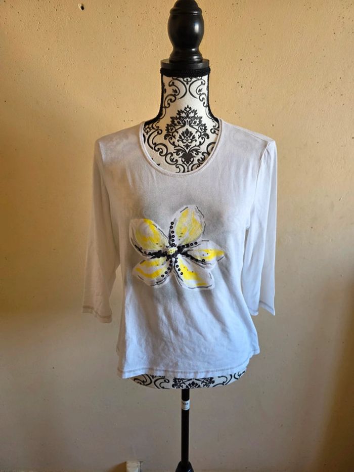 Tee shirt blanc fleurs femme T : 44 - photo numéro 1