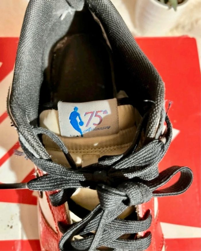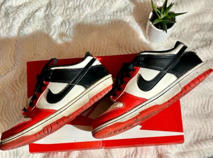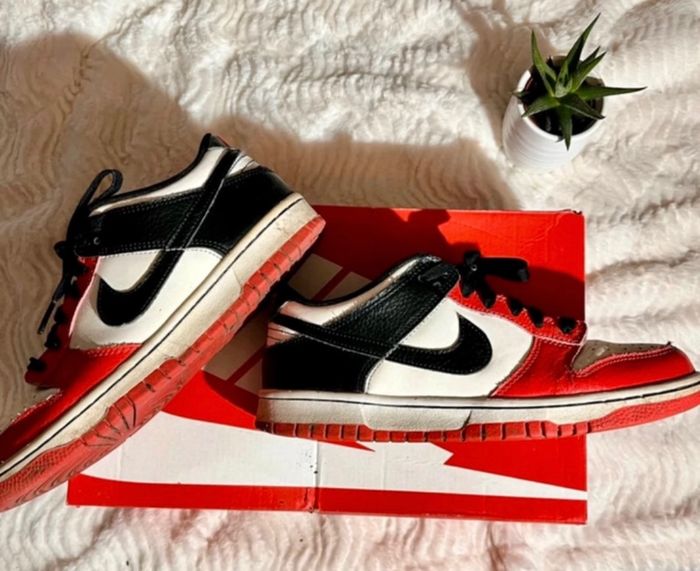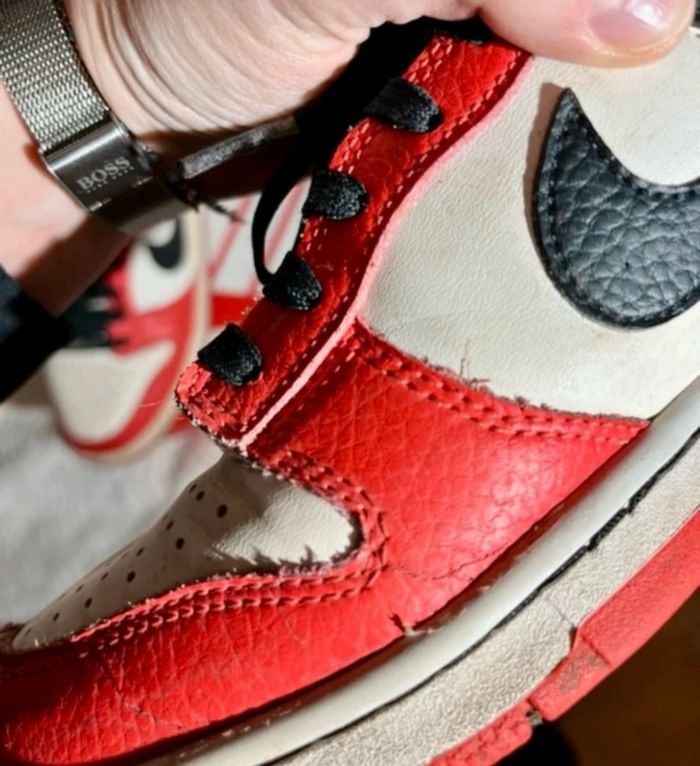 Paire de chaussure Nike noir et rouge porté plusieurs fois, un peu abîmé a l’intérieur de la chaussure et au niveau de la peinture à l’extérieur comme montré sur les photos