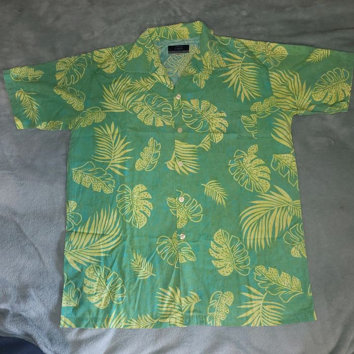 Chemisette Coton Vintage Y2K 👔 Green Leaves - Taille L - photo numéro 1