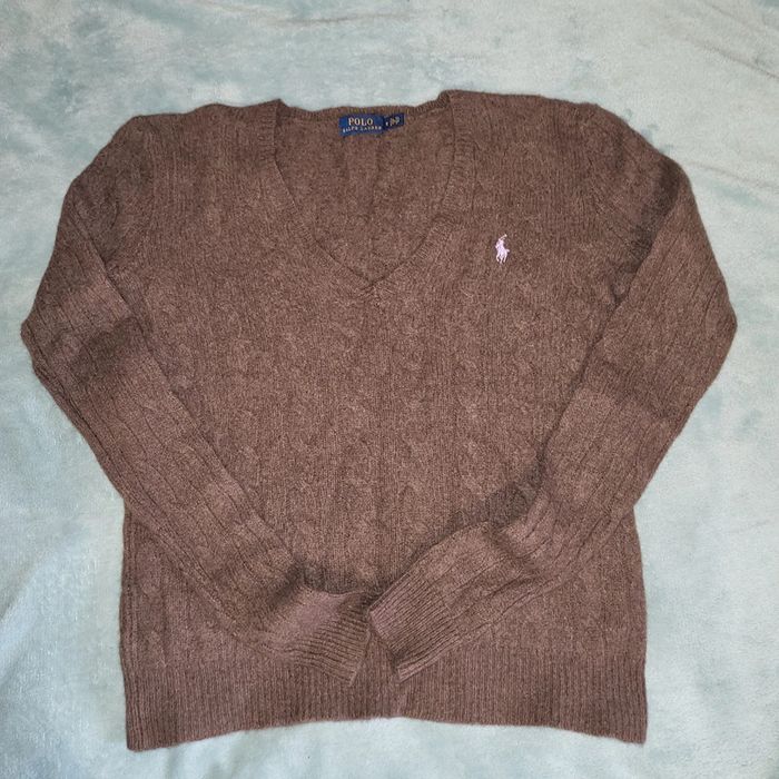 Pull Torsadé Laine Cachemire  Marron Vintage Femme 🧥 Ralph Lauren  - Taille S - photo numéro 1