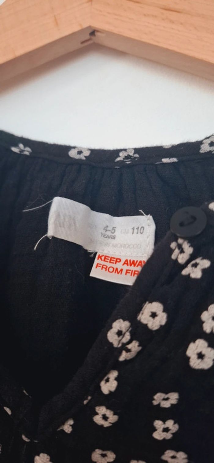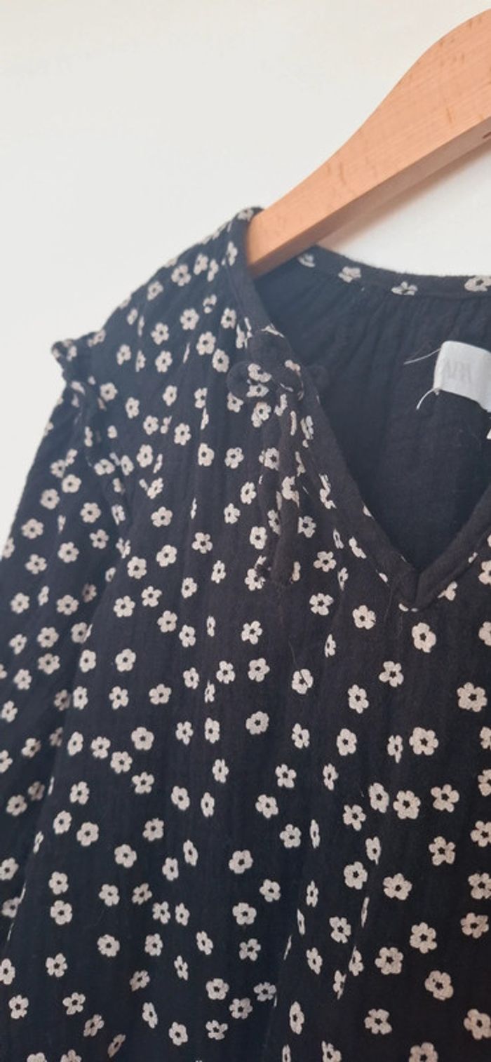 ✨ Blouse Printanière Zara Kids – Fleurs Noires et Blanches – Taille 4/5 ans ✨