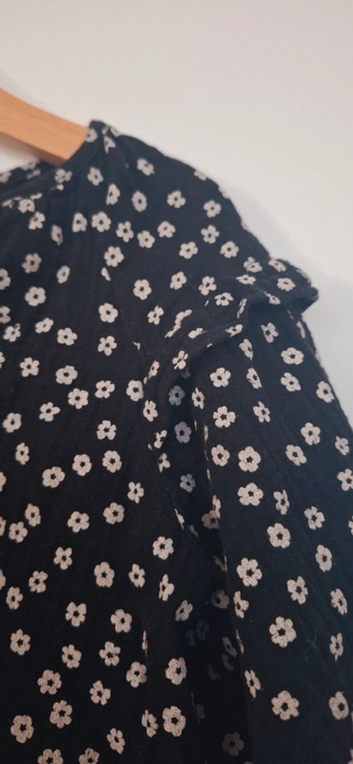 Offrez à votre petite un look tendance et frais avec cette adorable blouse printanière de Zara Kids ! Les fleurs noires et blanches apportent une touche chic et intemporelle, idéale pour les journées ensoleillées. 🌸