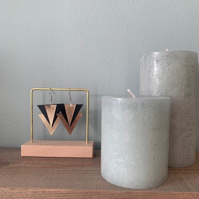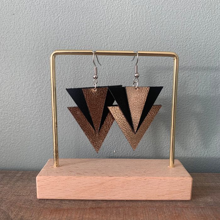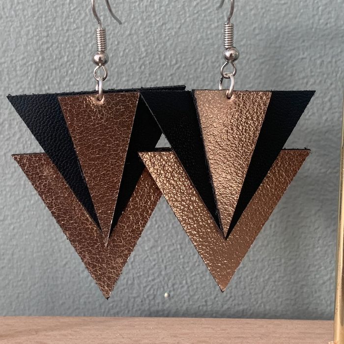 Boucles d’oreilles neuves En cuir #bouclesdoreilles #bouclesdoreillespendantes #bouclesdoreillesfantaisie #bouclesdoreillescuir #upcycling #chutesdecuir #cuir #cuirveritable #cuirvintage #cuirrosegold #cernit #fimo