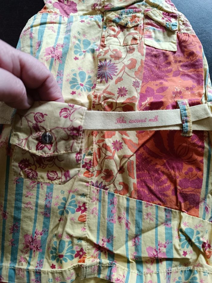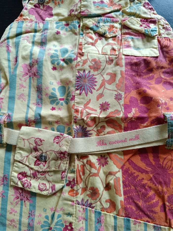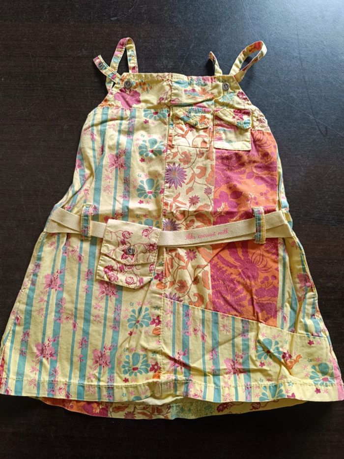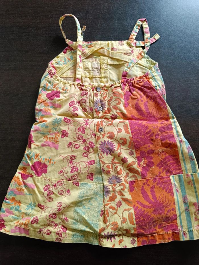 Robe IKKS Jaune Impressions colorées Poche à la ceinture Fines bretelles avec double boutons pour régler la longueur Fermée par boutons dans le dos 100% Coton TAILLE 12 MOIS TRES BON ETAT Allez voir mes autres ventes!