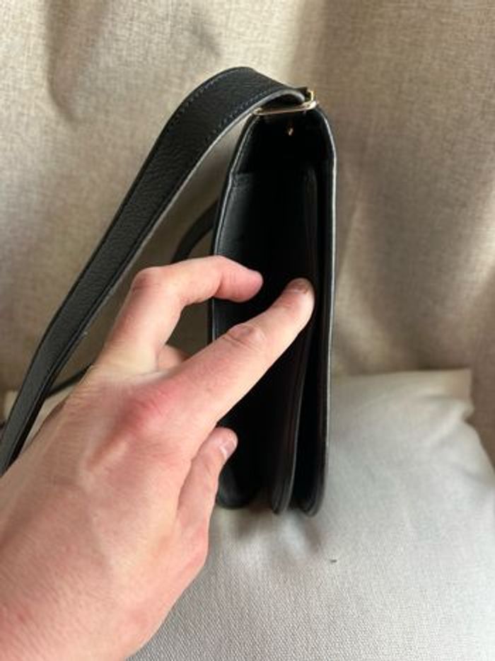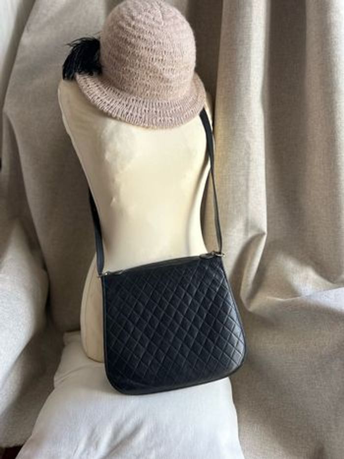 Réalisé en cuir noir matelassé au toucher souple et patiné avec charme, ce modèle rare séduit par sa silhouette épurée et sa structure plate, signature d’un luxe discret et raffiné. La bandoulière réglable permet un porté épaule ou croisé, selon l’allure recherchée.