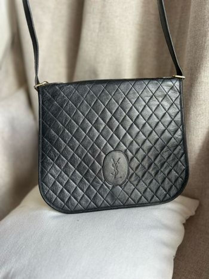 Yves Saint Laurent – Sac Épaule Vintage en Cuir Matelassé Noir rare