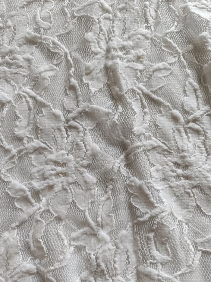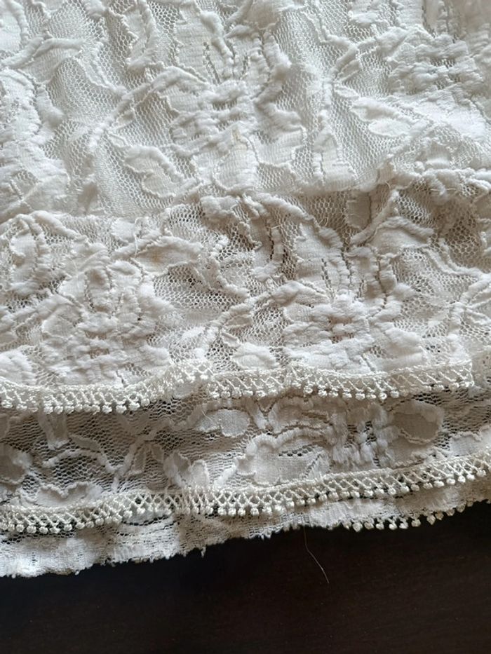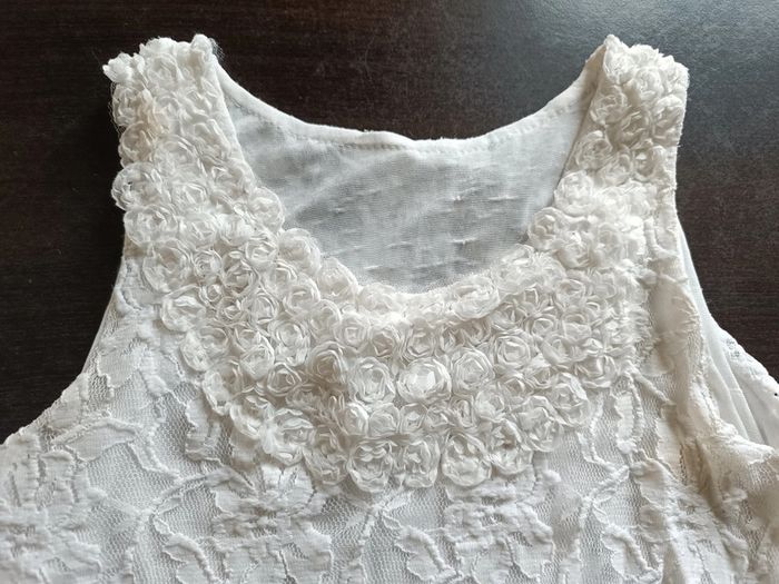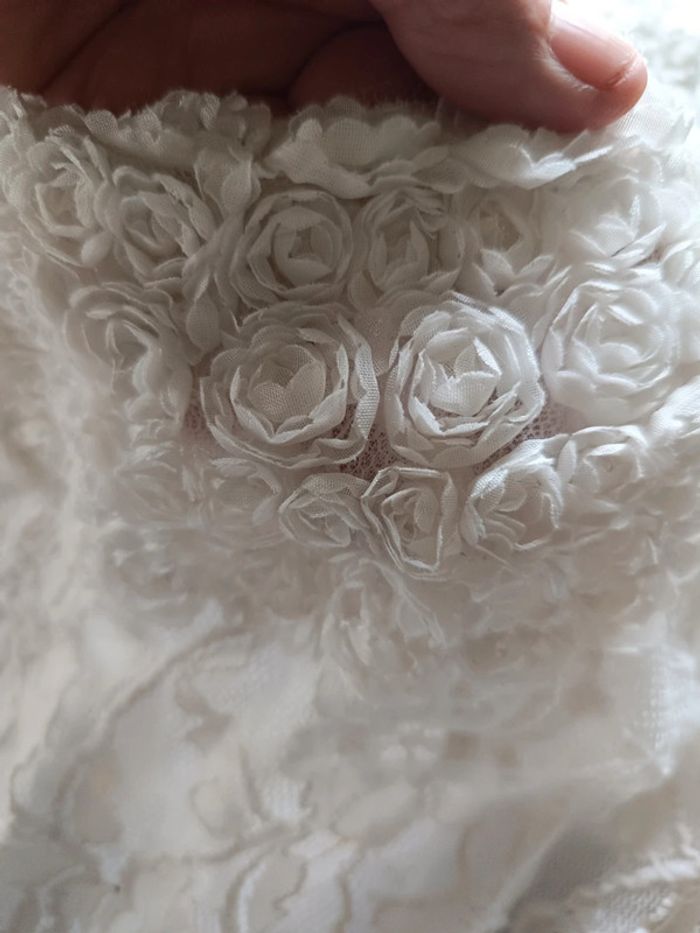 Robe Blanche Décolleté effet fleurs Larges bretelles Bas volanté Doublée TAILLE 10 ANS TRES BON ETAT Allez voir mes autres ventes!