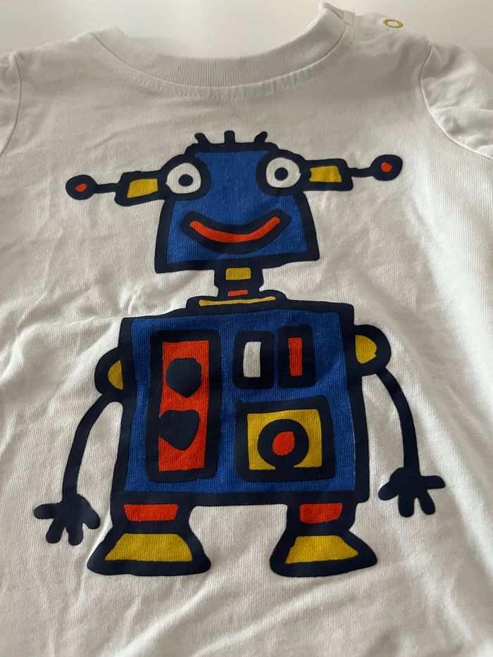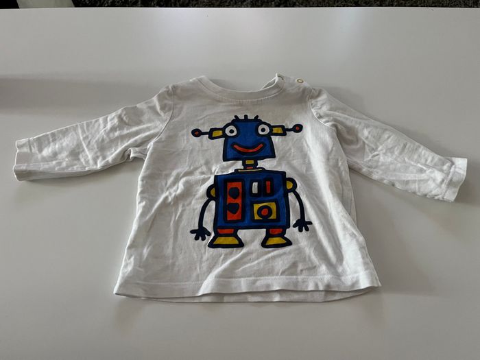 haut manches longues Blanc avec motif de robot sur le devant marque du pareil au même très bon état taille 6 mois 68cm pour plus d’informations ou de photos n’hésitez pas à m’envoyer un message