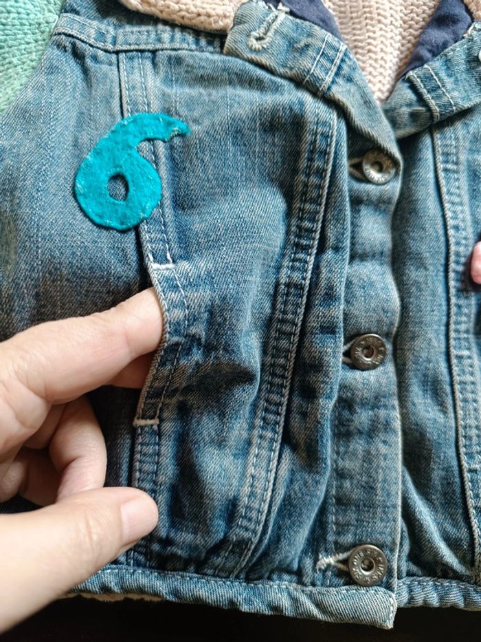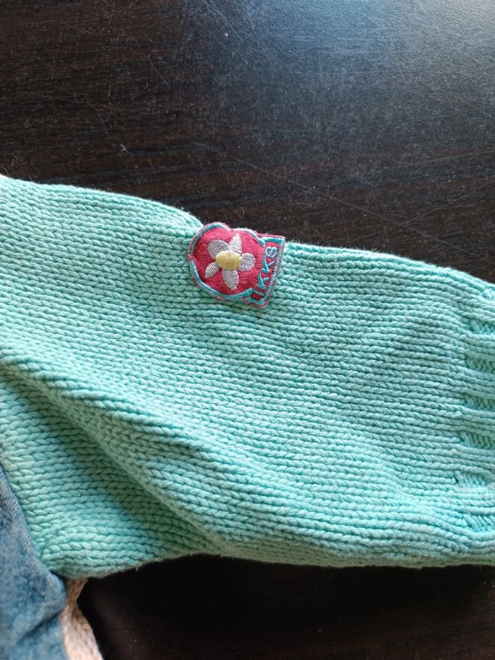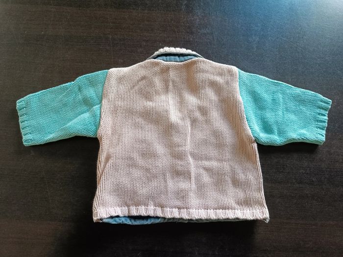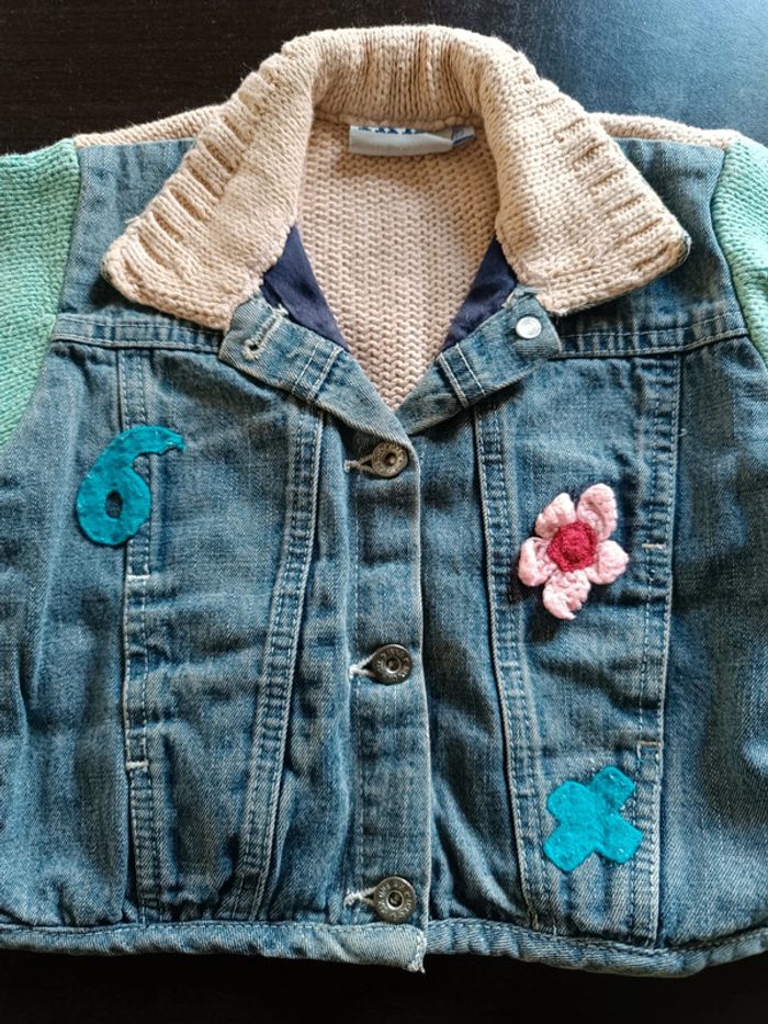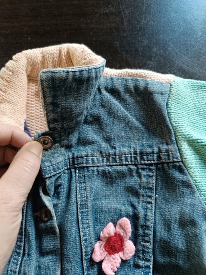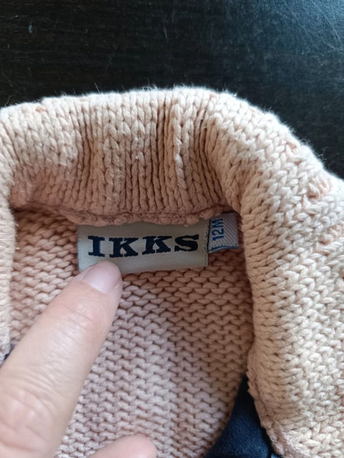 Veste IKKS Devant en jean Arrière rose clair & manches bleues turquoises en coton Fermée par boutons Applications sur le devant & sur 1 manche Poches TAILLE 12 MOIS BON ETAT Allez voir mes autres ventes!