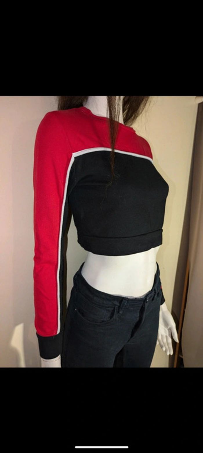Pull court croc top manches longues noir rouge sportwear - photo numéro 4
