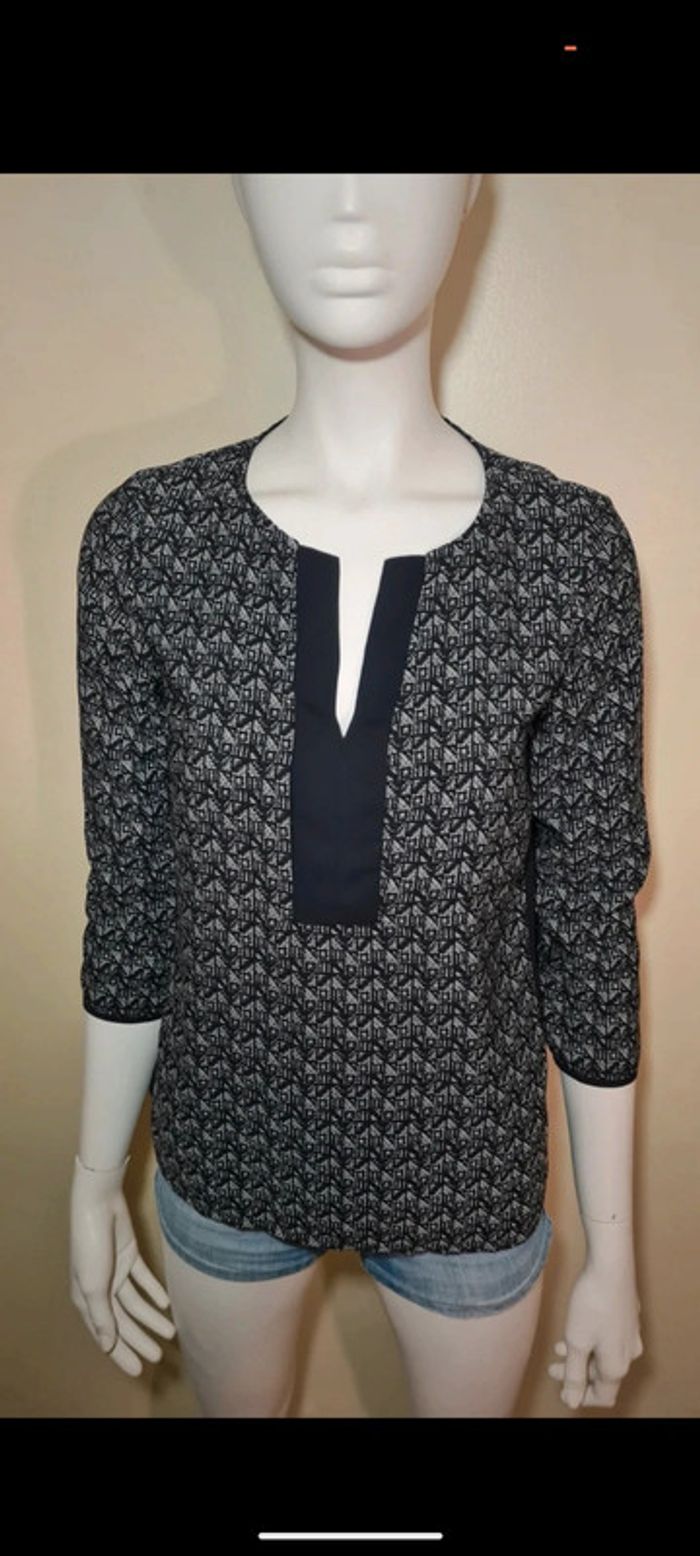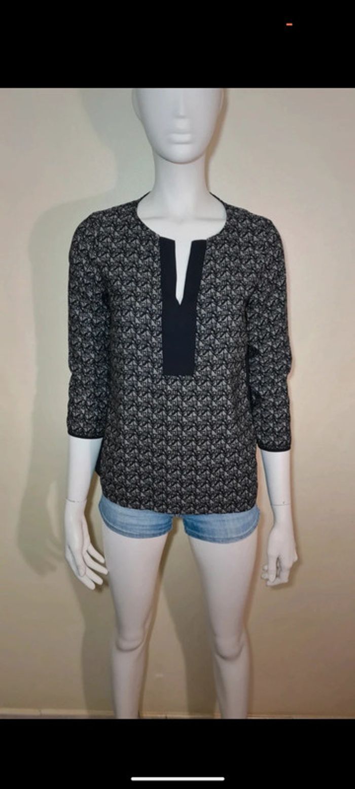 Blouse haut 3/4 motif noir blan - photo numéro 1