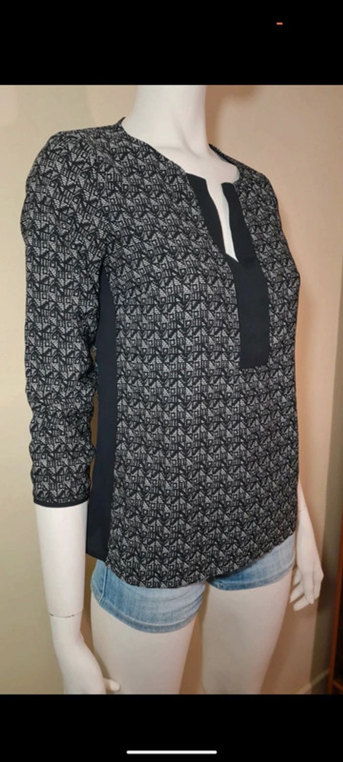 🪻Jolie haut leger manche 3/4🪻 motif noir et blanc décolleté original. Taille S Camaïeu Porté rarement Excellent état