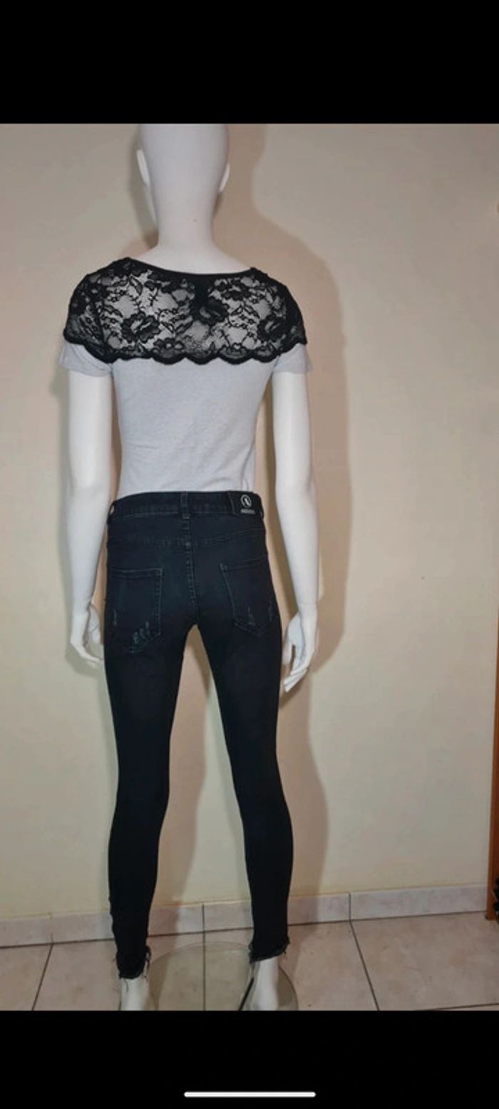 Haut Tshirt gris dentelle noire - photo numéro 3