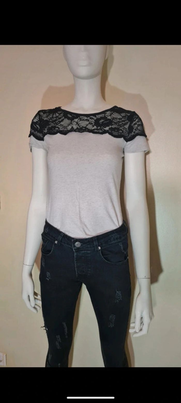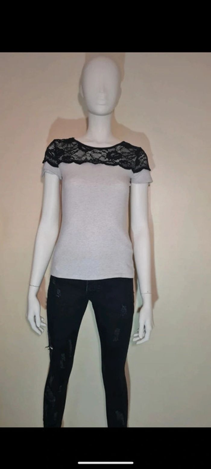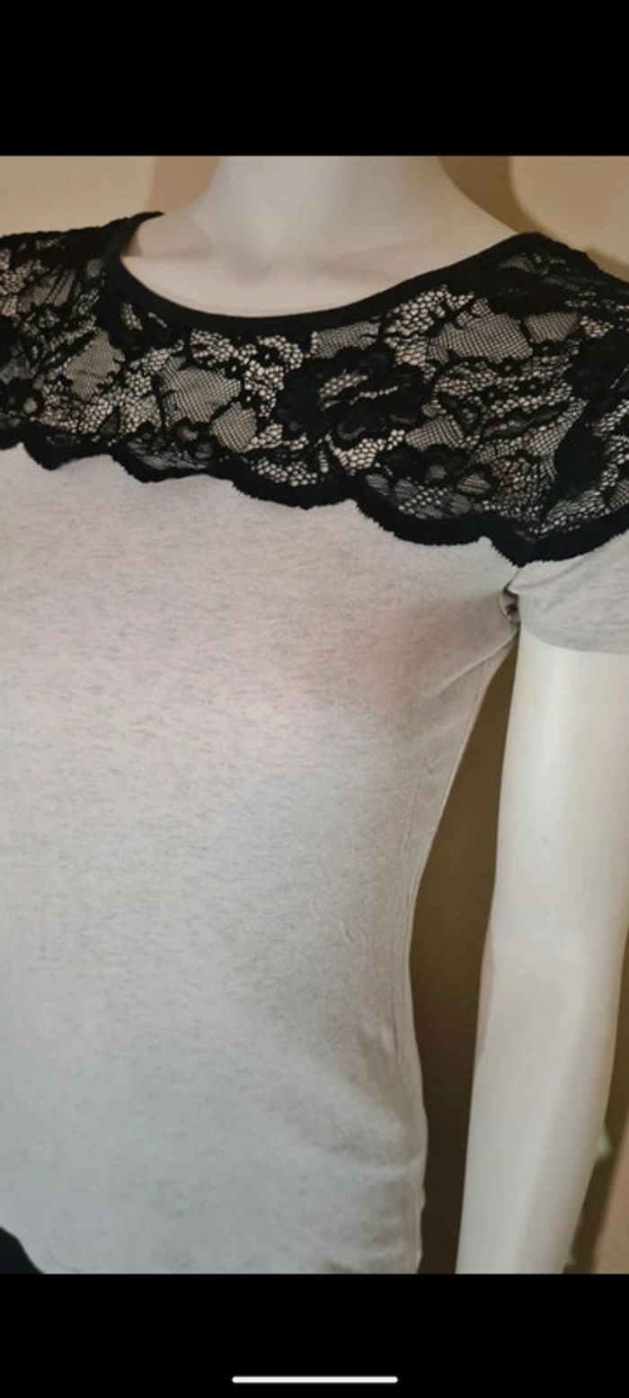 Haut Tshirt gris dentelle noire - photo numéro 1