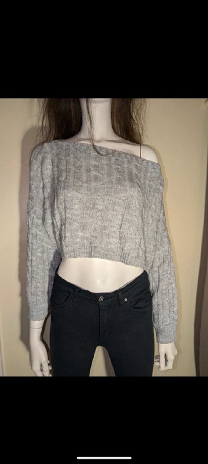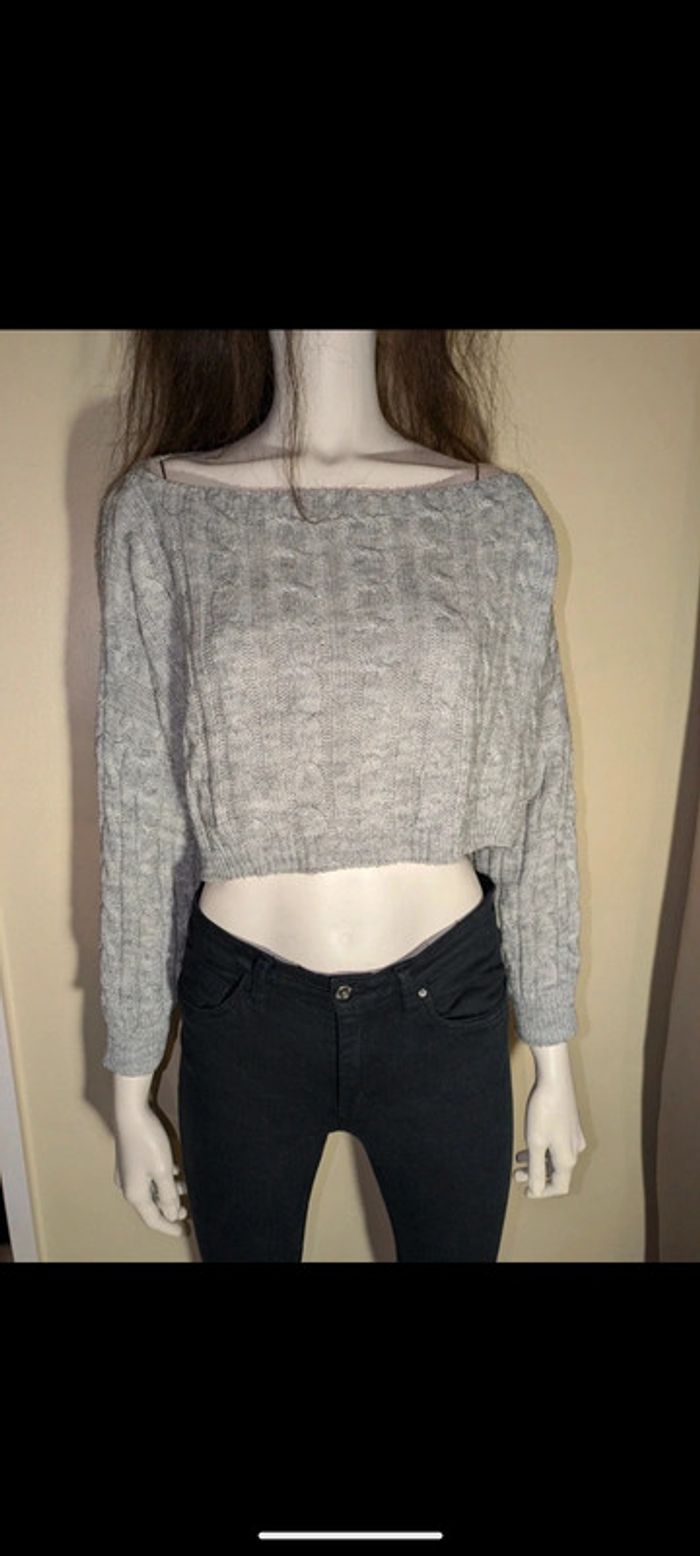 🩶Jolie petit pull gris, court🩶 manche longue Taille Unique, pas d'étiquette Neuf