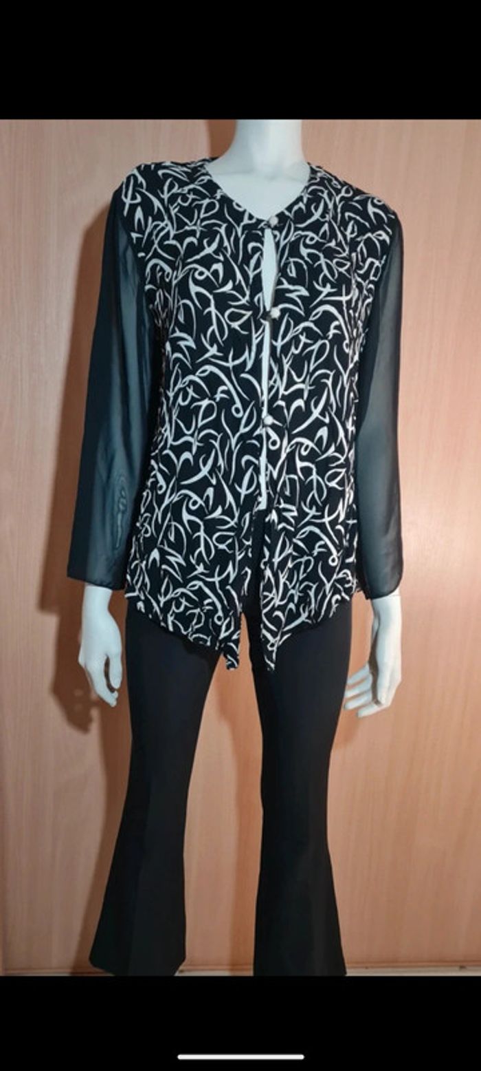 Blouse chemise haut léger noir et blanc L - photo numéro 2