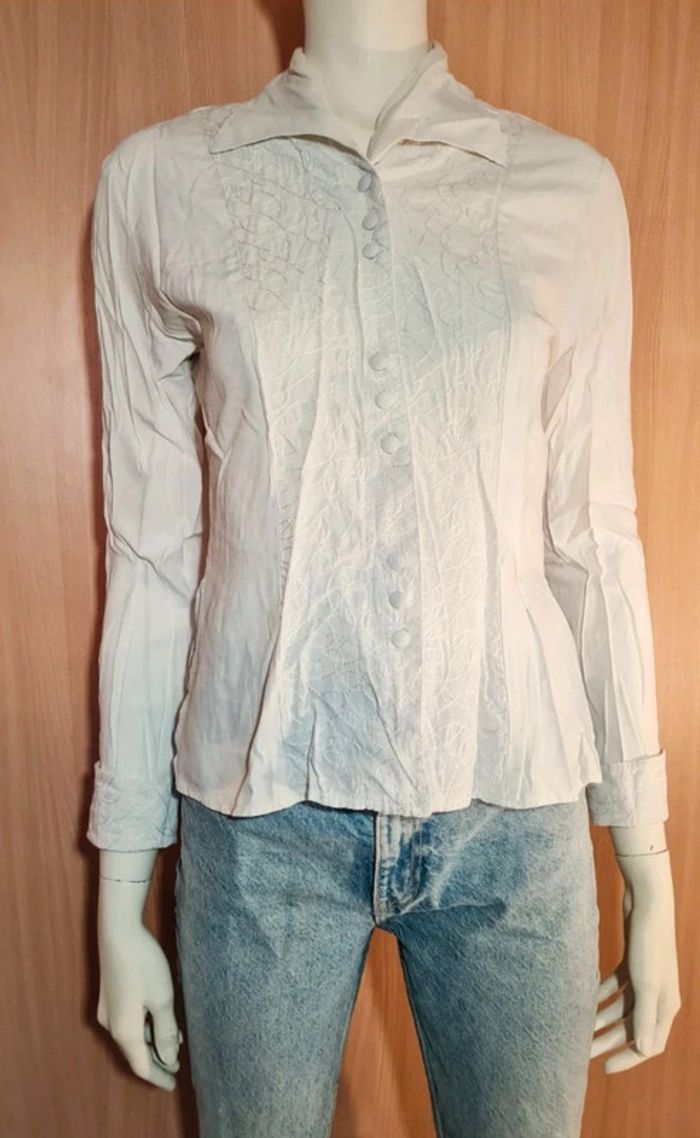 🤍Belle petite chemise🤍 motif brodé et col original. Taille 2. Convient à un M