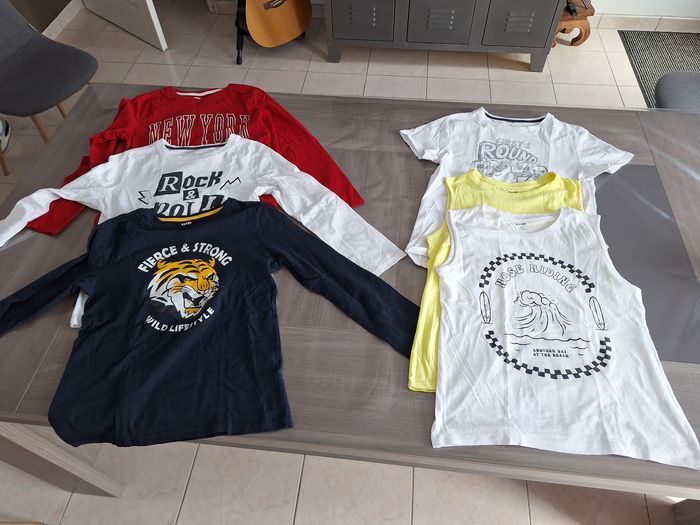 À vendre lot vêtements garçon en 12 ans comprenant : Un jogging complet camps united Un pull Kiabi Deux débardeurs Kiabi Un tee-shirt Kiabi Trois tee-shirt manches longues Kiabi Un short en jean Kiabi Deux pantalons Gémo