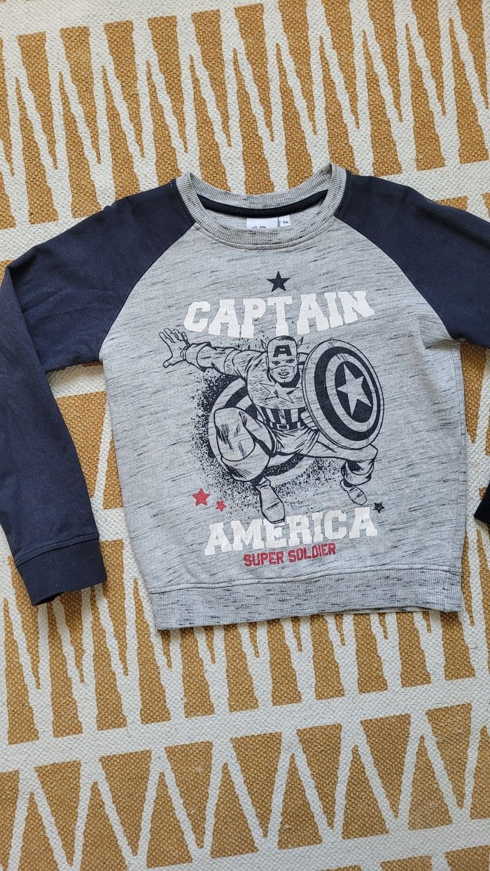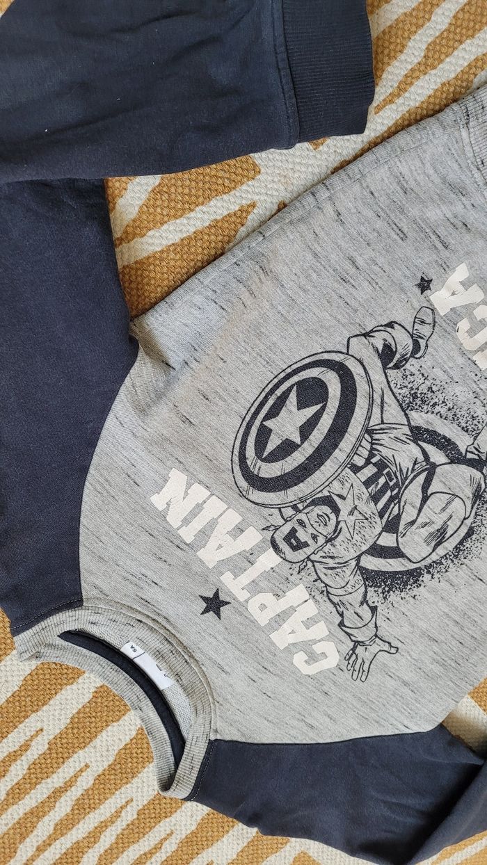 Pull sweat gris à manches noires Avengers captain america 6ans