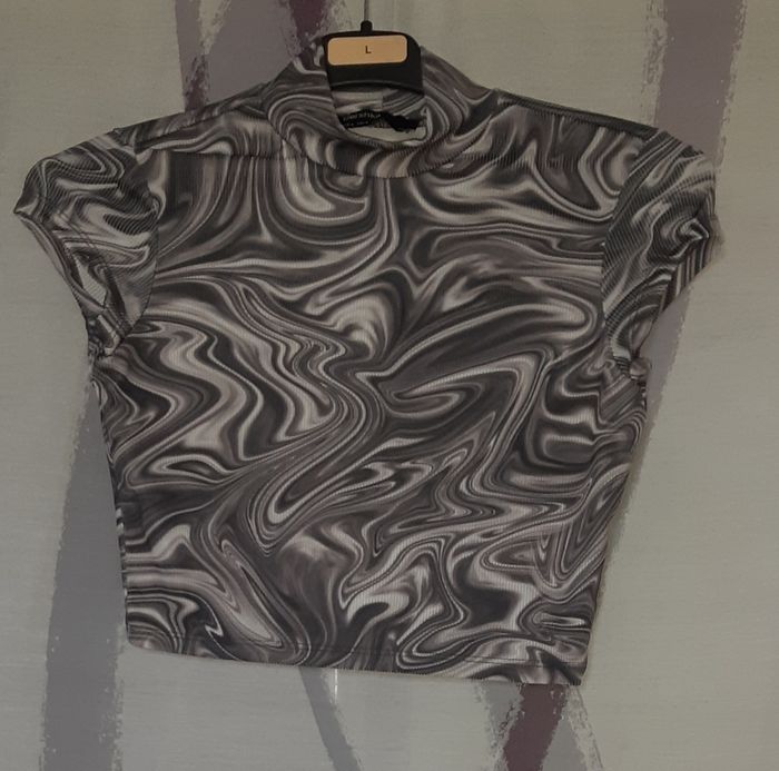 Top court femme Taille S Bershka Gris et blanc Très bon état