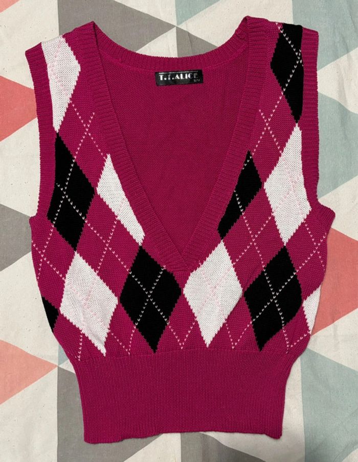 Pull fin sans manches T.T.Alice Rose/Noir/Blanc Taille S-M