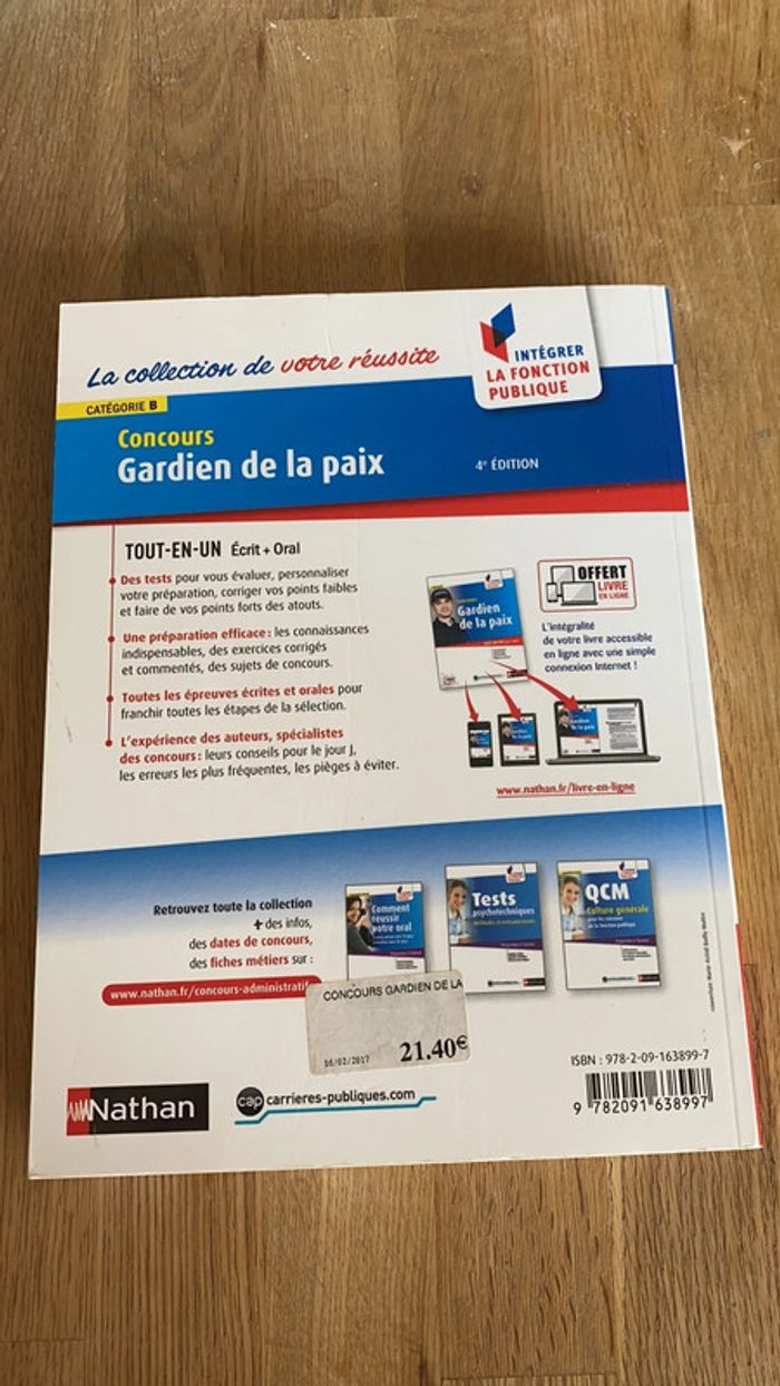 Livre Concours gardien de la paix Catégorie B Nathan