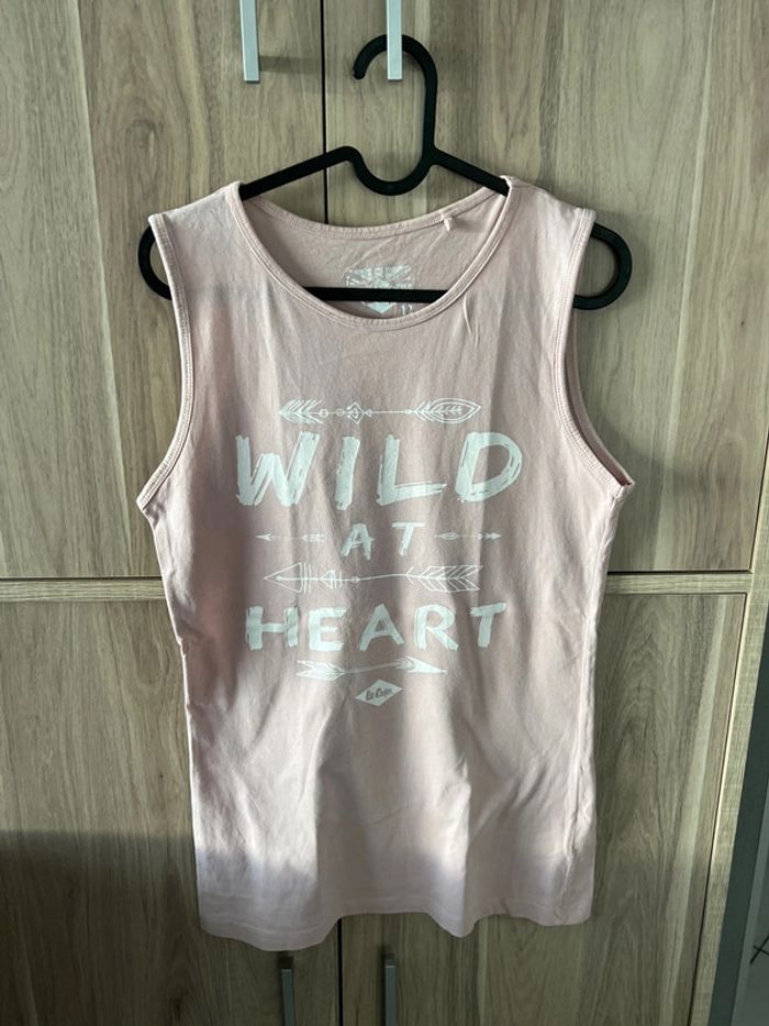 T-shirt rose clair, Lee Cooper 100 % coton Épaule à épaule. 36 cm Longueur du débardeur 66 cm. Très bon état Taille S 34/36