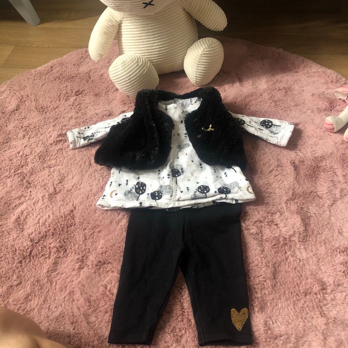 Ensemble composé d’un teeshirt manches longues + veste sans manches + legging En très bon état, orchestra, 3 mois