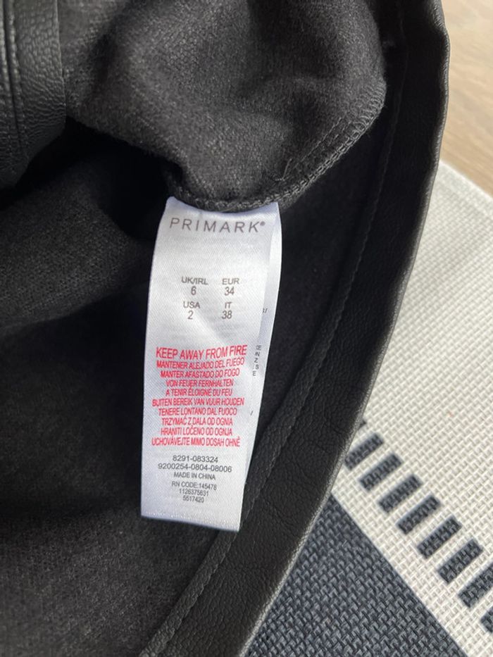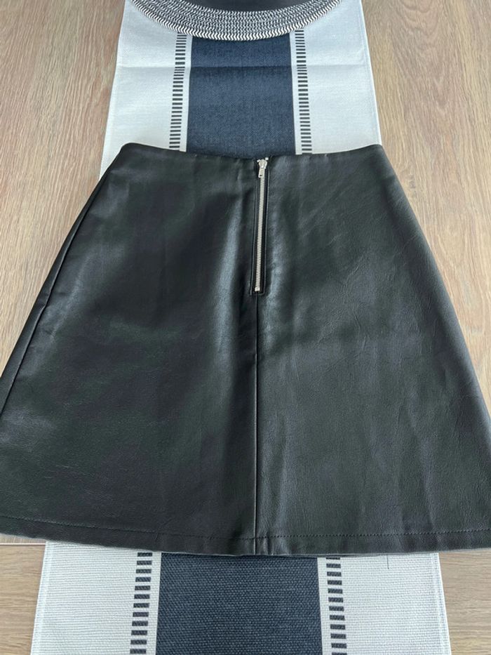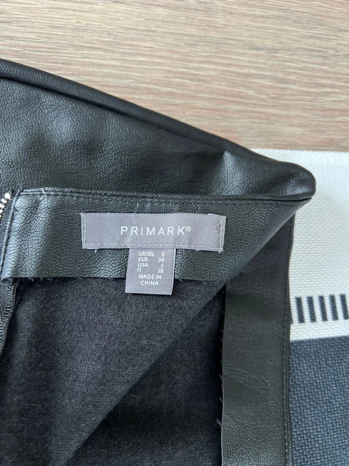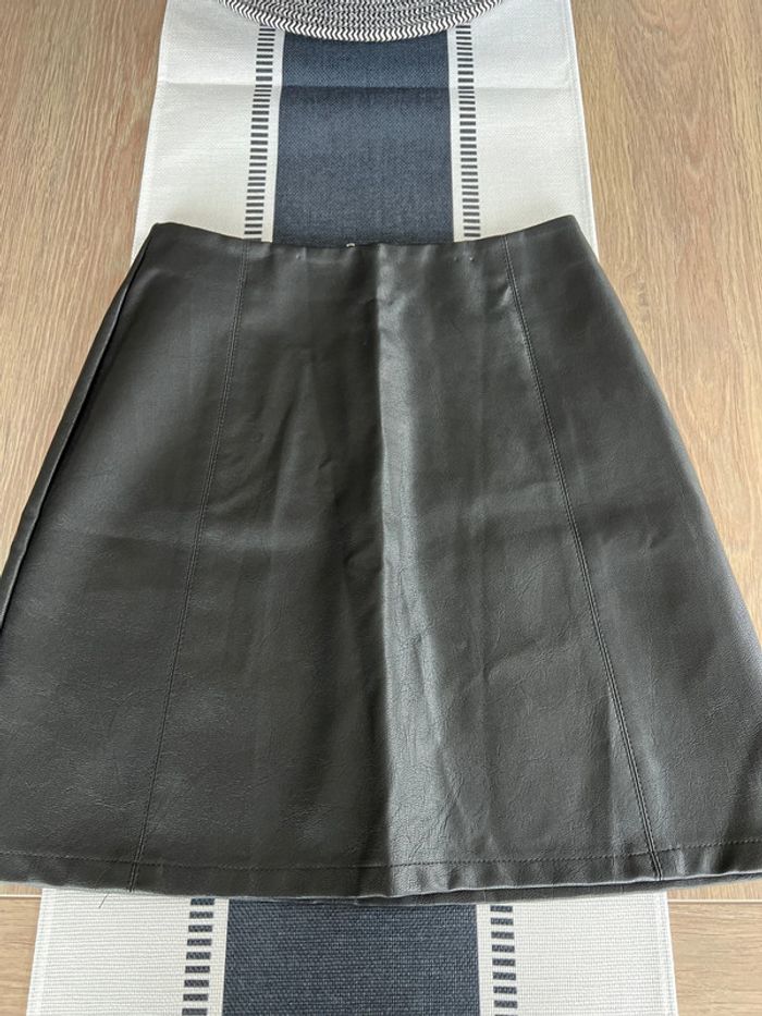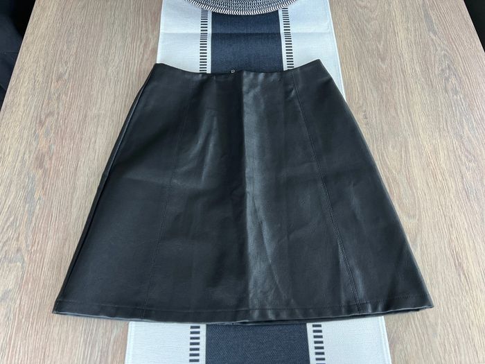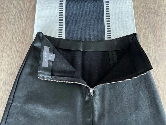 Jupe noire Effet cuir Jamais porté petite marque en haut de la jupe, car je l’avais mis sur un ceintre pince(voir photo) Taille 34 Primark Longueur 42 cm Fermeture zippé derrière