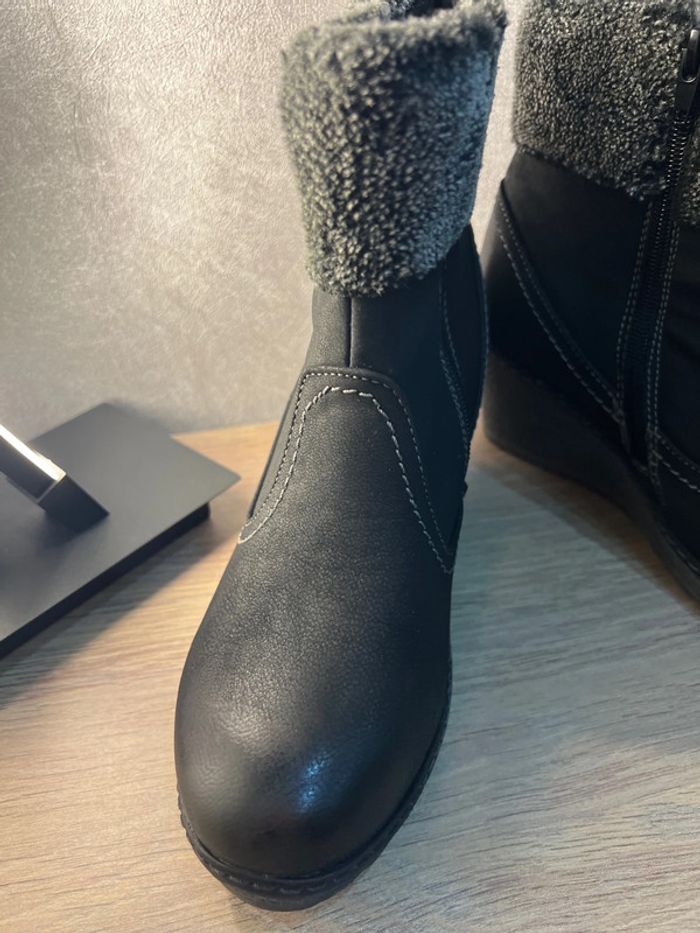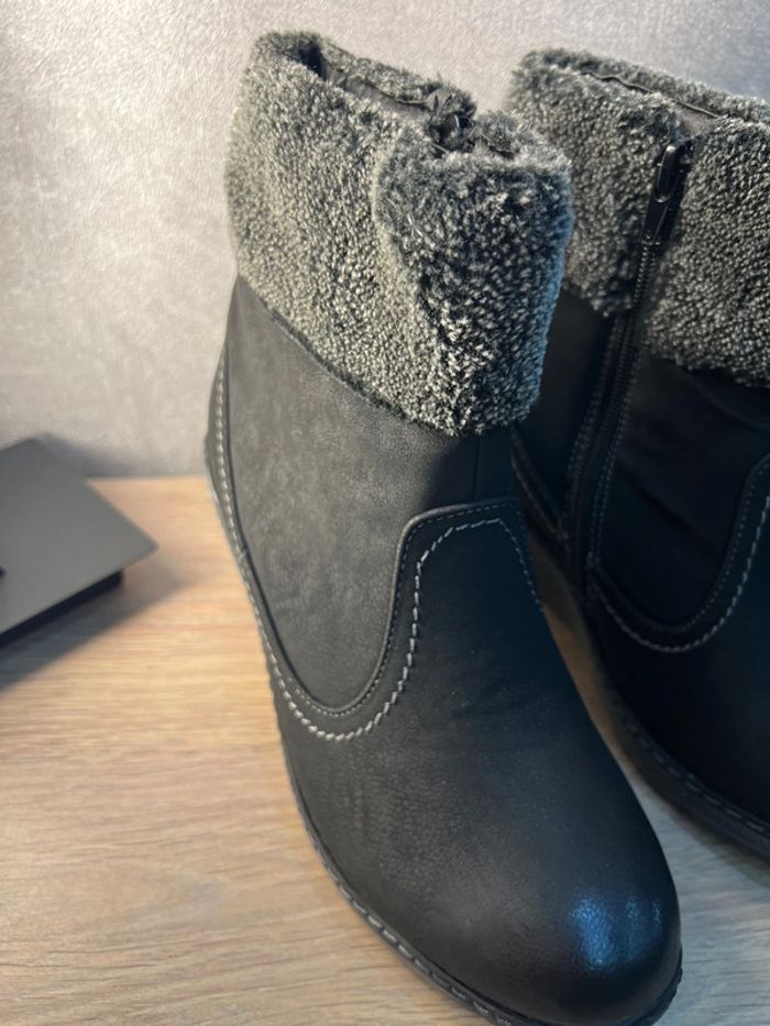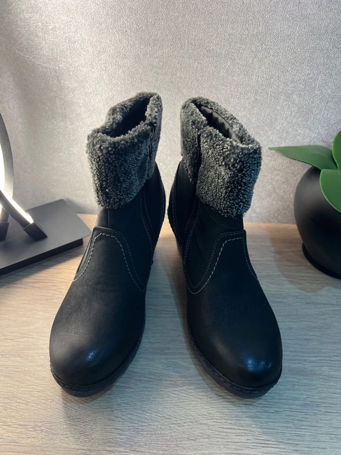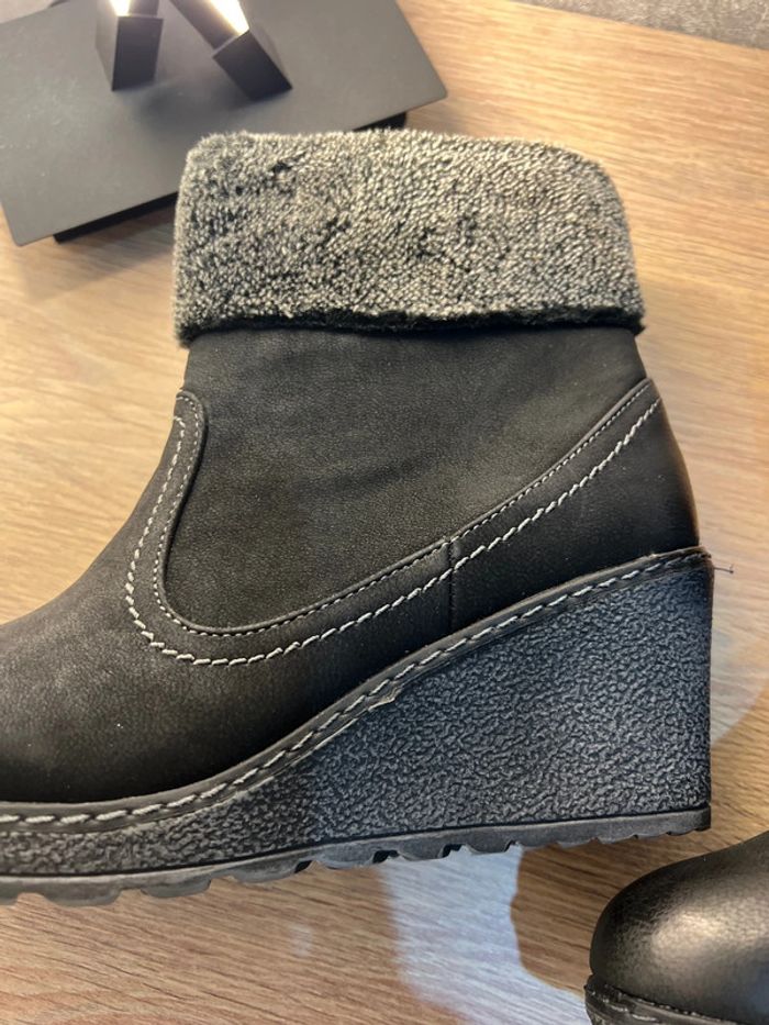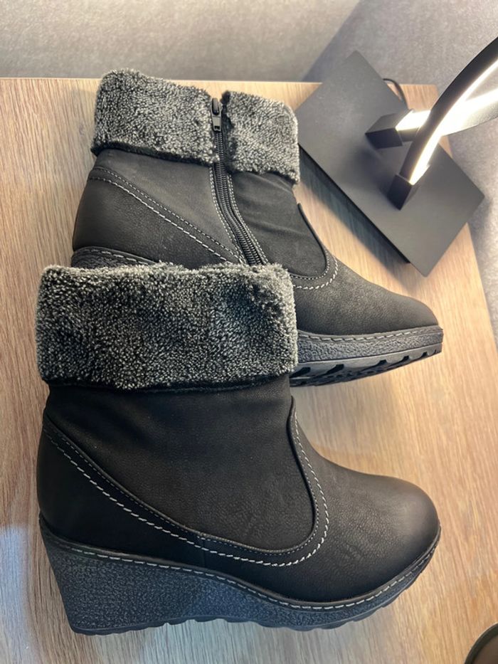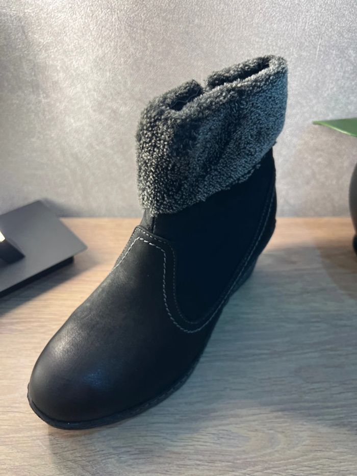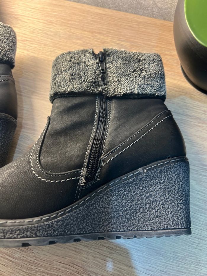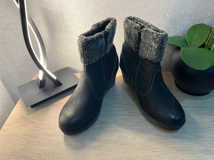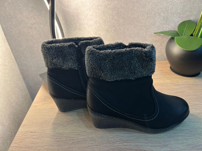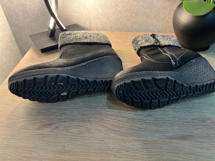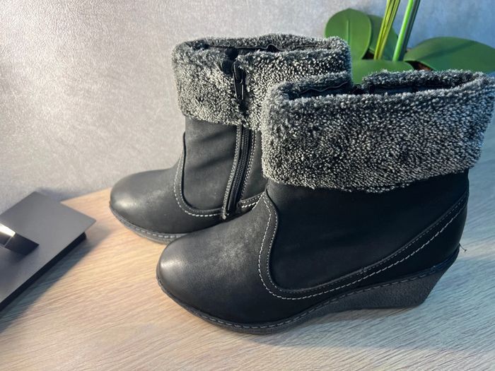 Bottines Ixoo Couleur noir et grise Porte 2 fois Petit fourrure en haut des bottines Hauteur des talons, 7 cm Avoir des pieds assez fin Taille 37