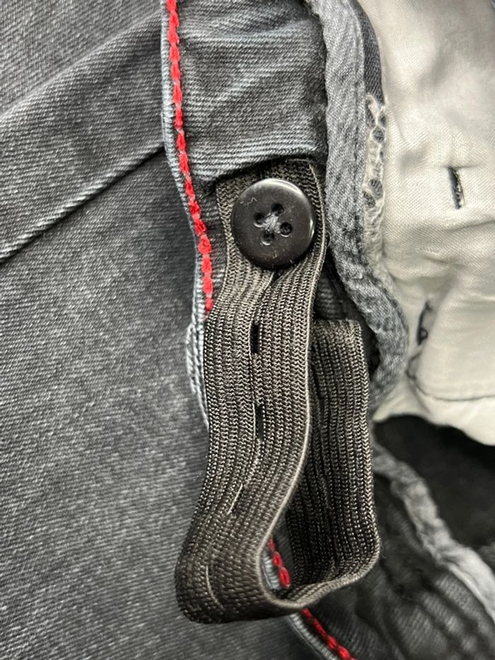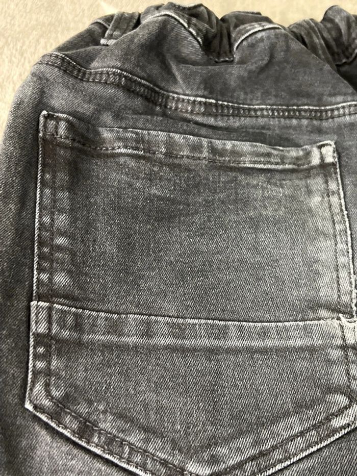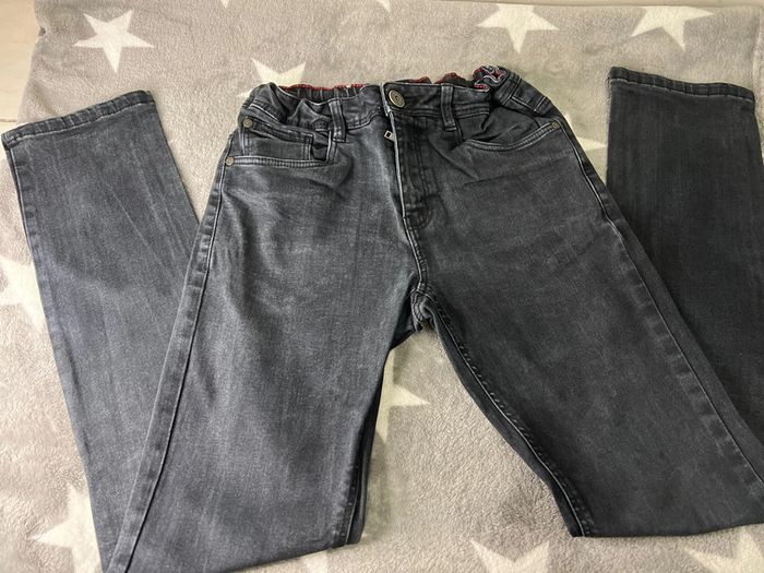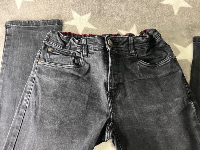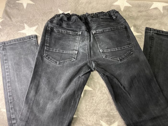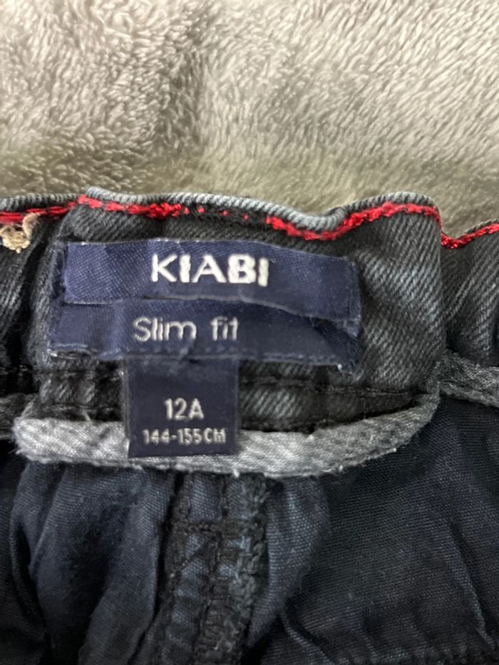 Jean slim fit Kiabi Taille 12 ans 144-155 cm Taille réglable Couleur noire effet délavé Taille 38 cm Longueur 90 c Bon etat 98 % de coton 2 % d’élasthane