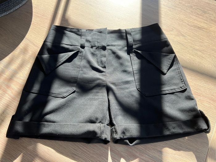 Short habillé noir cache-cache Taille 36 cm longueur 34 cm Couleur noir Très bon état 2 poches sur le devant On peut rajouter une ceinture