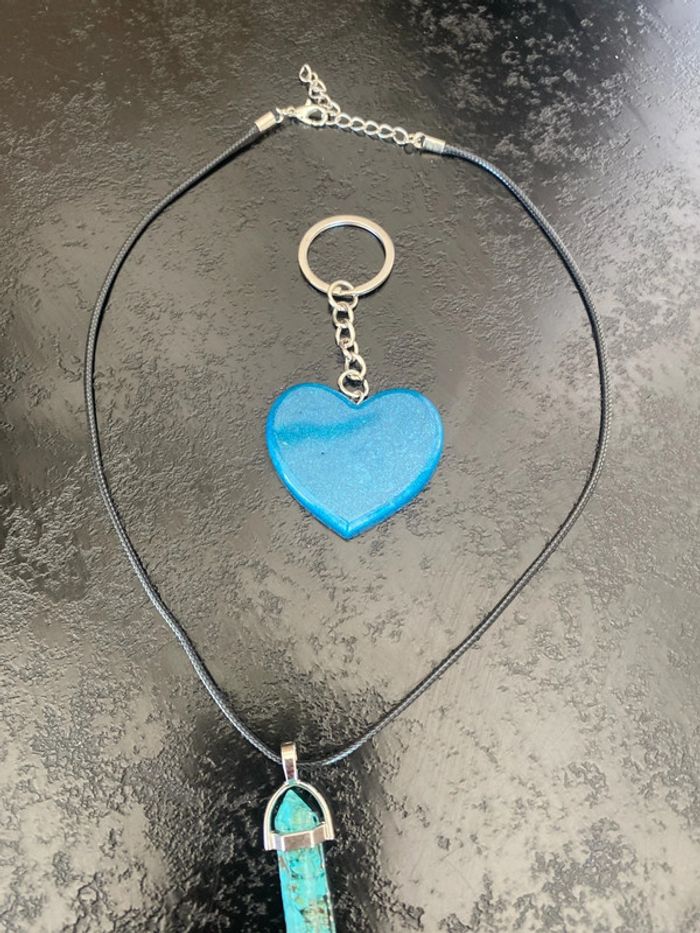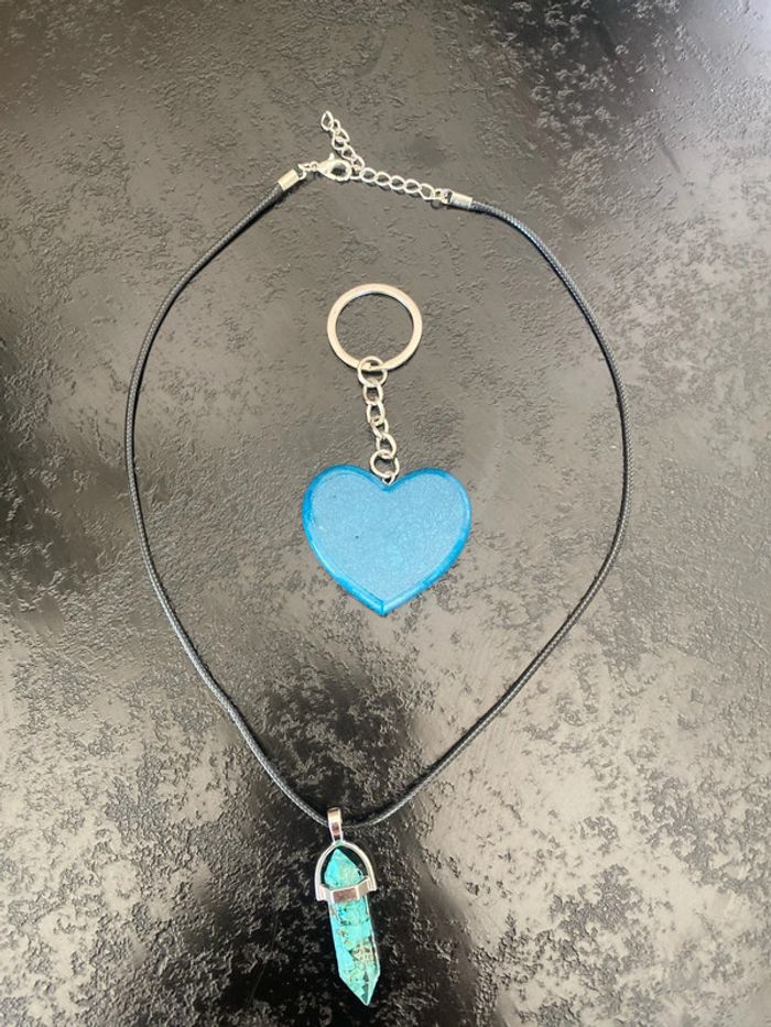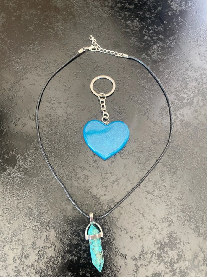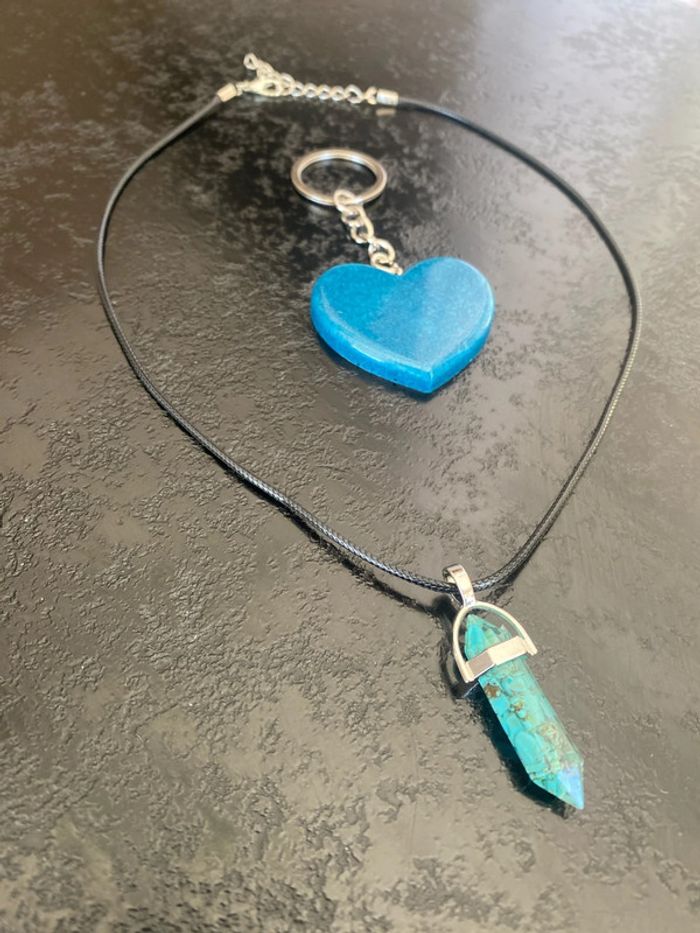 Collier pierre chakra petite pierres turquoises à l intérieur + porte clefs 💙 Neuf