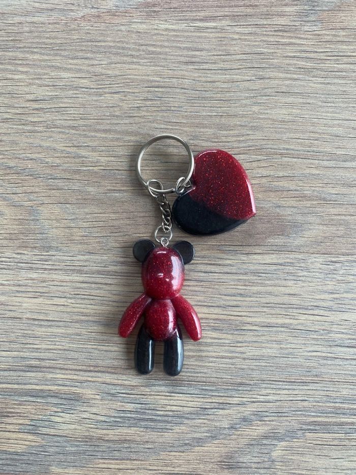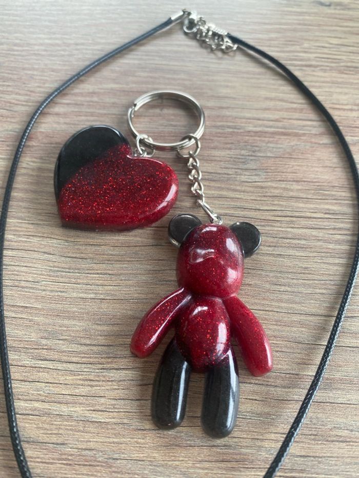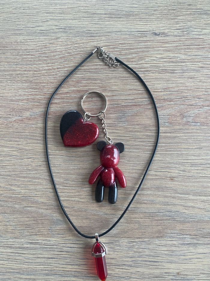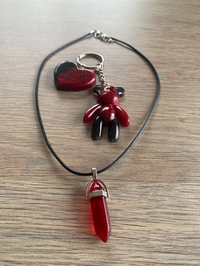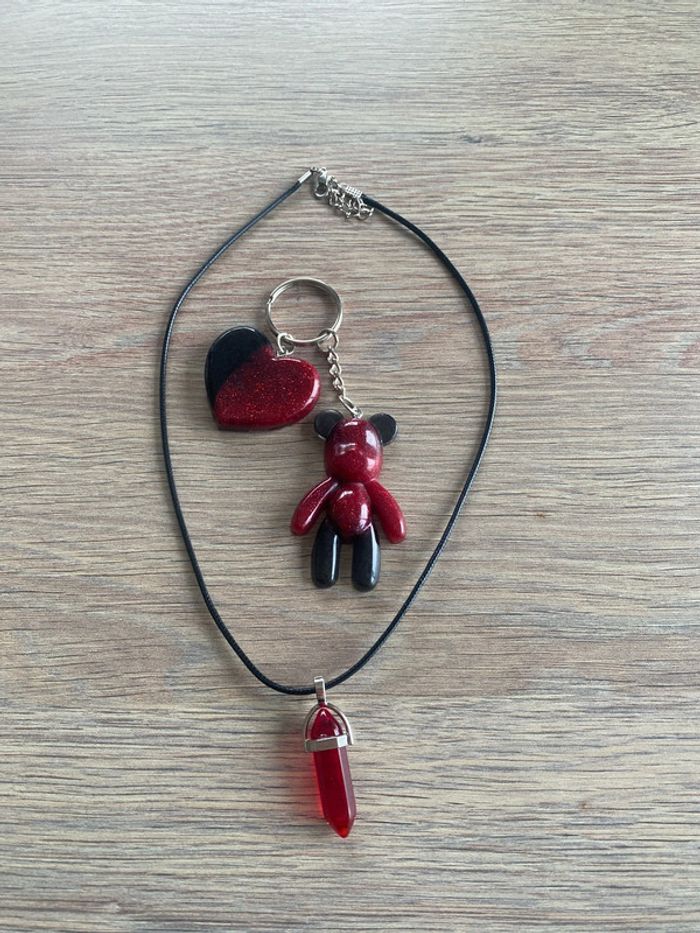 Collier pierre chakra rouge subventions + porte-clés, assorti, nounours 🧸+❤️ Couleur rouge et noir Idée cadeau 🎁 Le porte-clés est fait en résine époxy Neuf