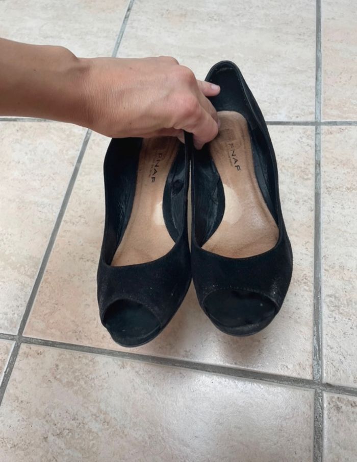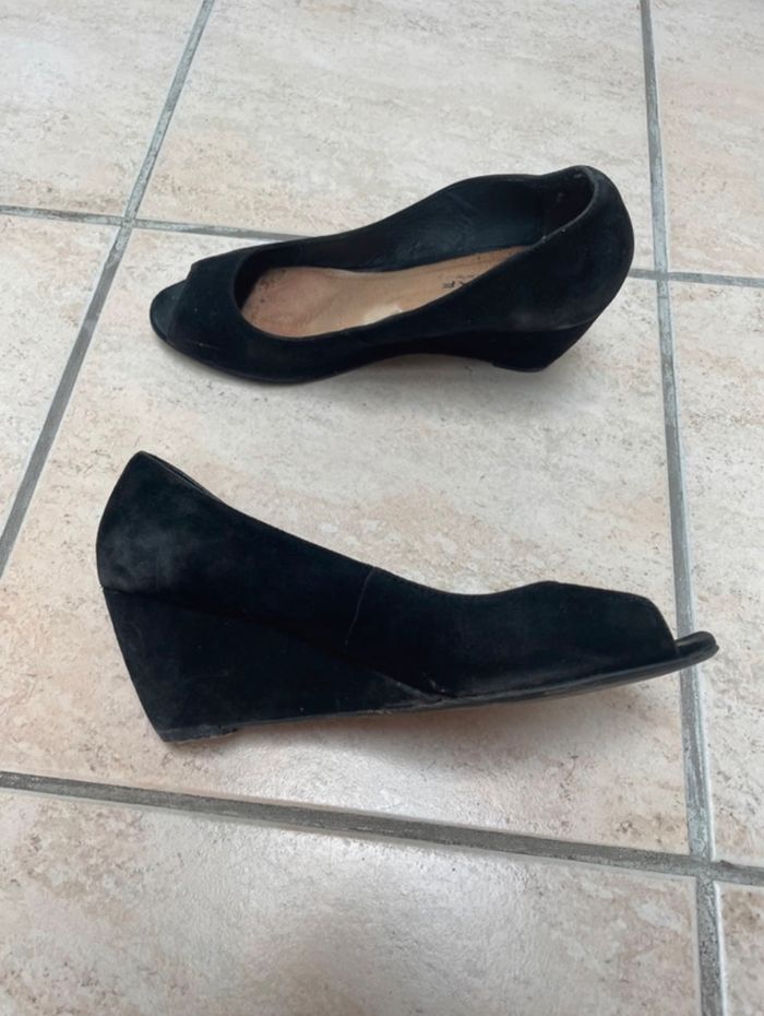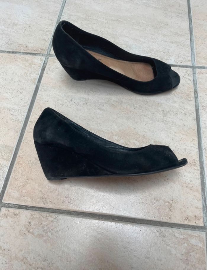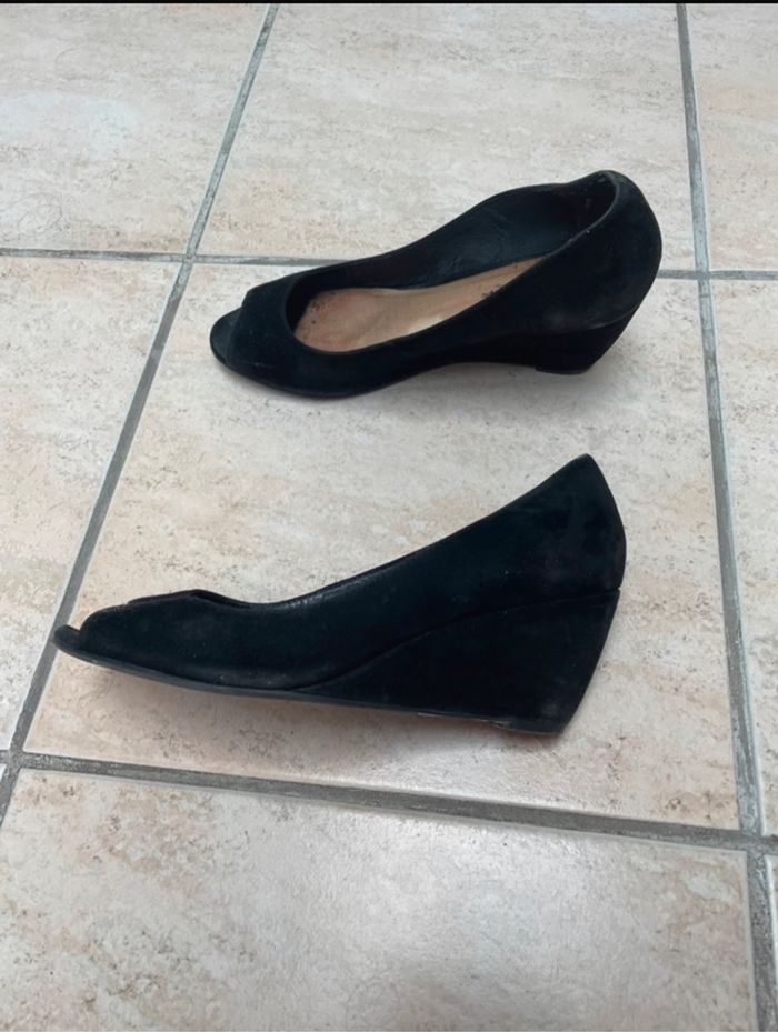 Vends chaussure noir , taille 39 de la marque naf naf. Talon compense de 7cm. Les chaussures sont en daim. Je les vends 2 euros.
