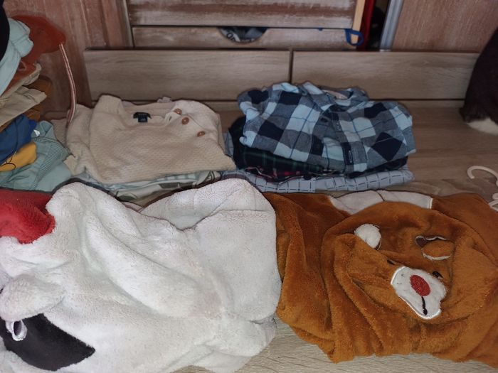 Bonjour je vends un lot de 19 vêtements garçons 24 mois. 4 chemises manches longues. 4 pulls. 1 pyjama combinaison hiver. 1 robe de chambre. 2 joggings. 3 jeans. 3 Tshirt. 1 ensemble (jogging pull veste ).