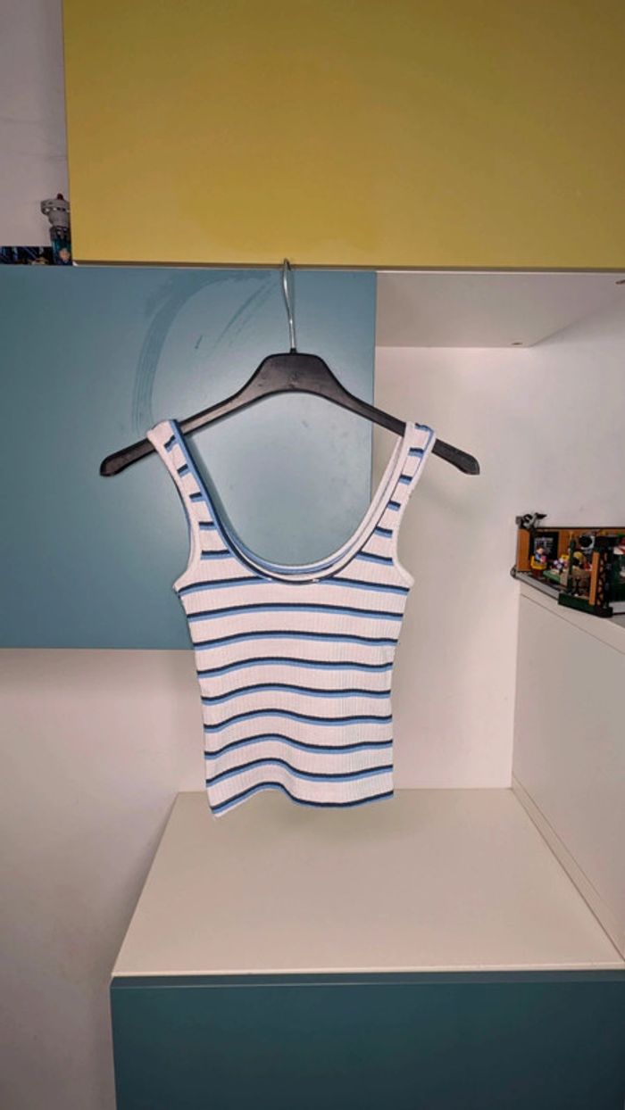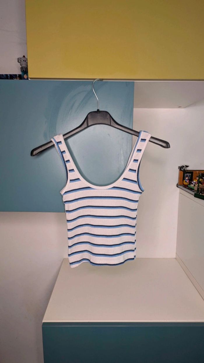 Débardeur Primark blanc à rayures bleues, Taille 32 - photo numéro 3