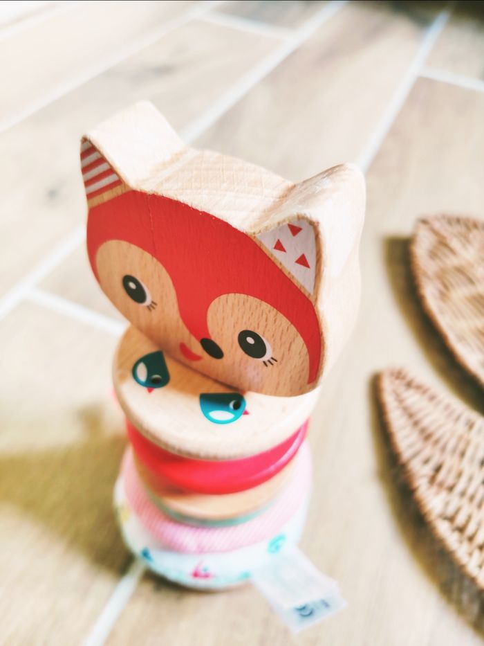 🦊Jeu d'éveil sensoriel - Pyramide/tour renard avec anneaux à empiler - marque Lilliputiens - JB1441