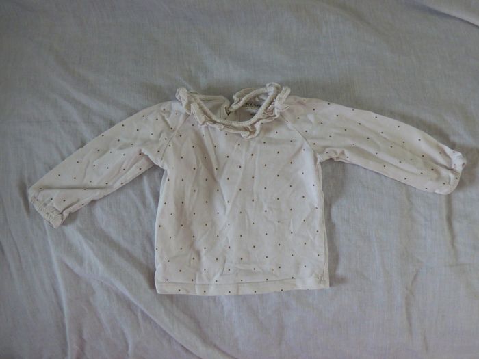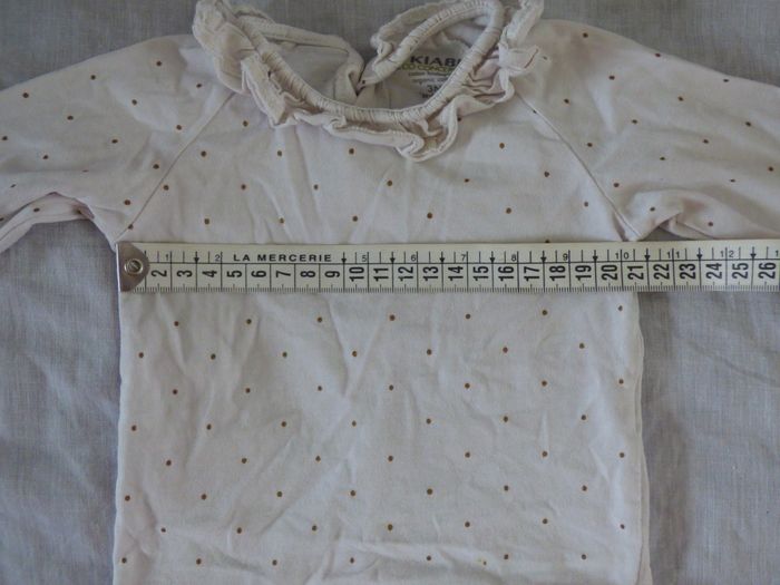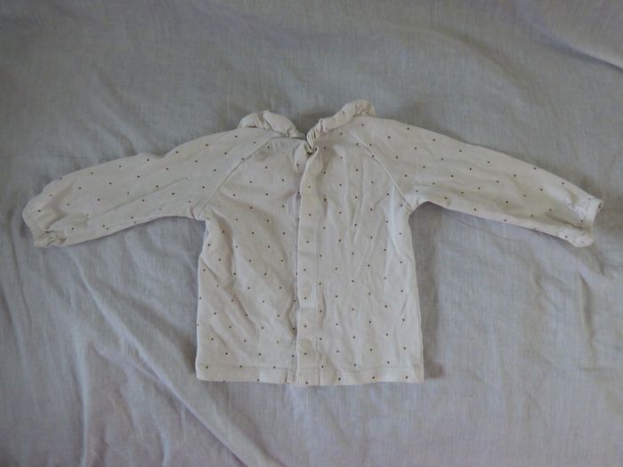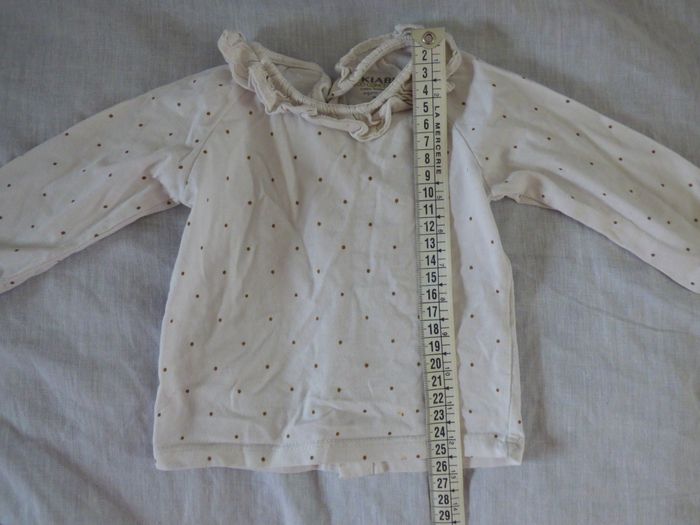 TEE-SHIRT MANCHES LONGUES BEBE FILLE KIABI 3 MOIS MATIÈRE ÉTIQUETTE COUPER MAIS JE PENSE À DU COTON COULEUR BLANC AVEC DES POIS DE COULEUR DORE FERMETURE PAR BOUTONS PRESSION DANS LE DOS MESURE DU VETEMENT ( VOIR PHOTOS ) TRES PEU PORTER, EN TRES BON ETAT NUMERO 12 N'HESITEZ PAS A ME CONTACTER SI VOUS AVEZ DES QUESTIONS