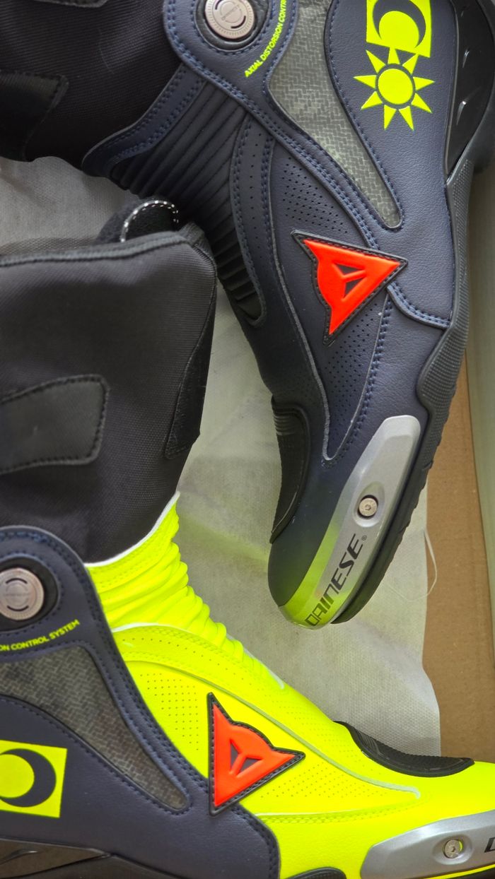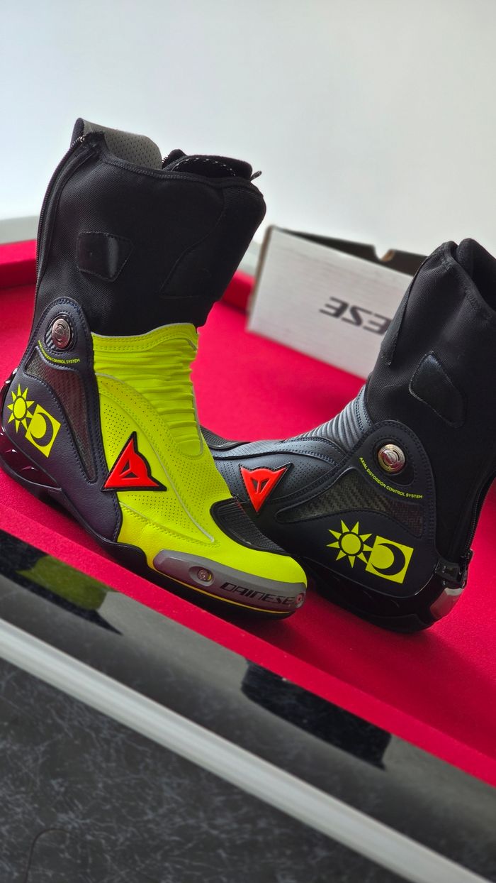 Dainese Axial D1 Replica Valentino Rossi boots Jaune fluo/noir Taille 44 Etat proche du Neuf portée une seule fois Boite d’origine