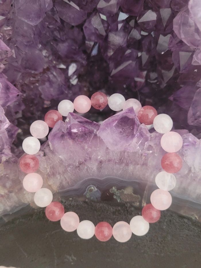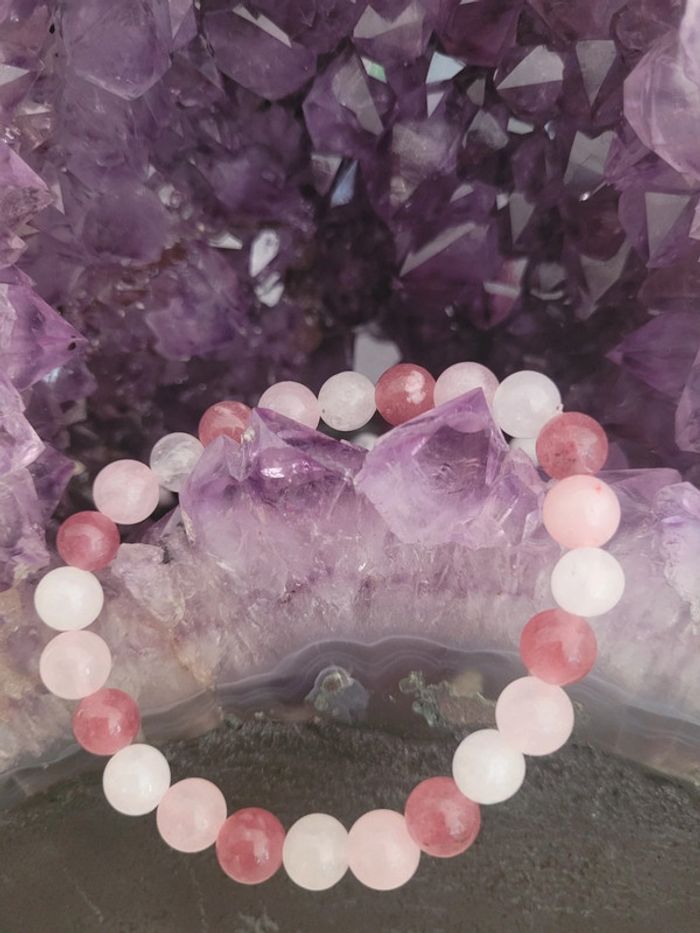 Neuf. 24 perles en pierres véritables de quartz rose et fraise et perles de lune de 8mm. Pour attirer l amour. Philtre d amour? Prix fixe. Il ne s agit pas de perles du marché ! La qualité a un prix. Celui- ci est au plus bas. Merci de votre compréhension. #isabo66_bijoux