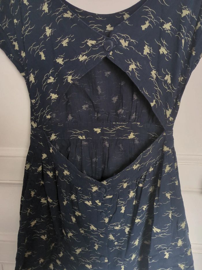Superbe robe bleu motif lapin Angleterre Londres L dos nu - photo numéro 4
