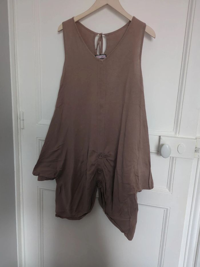 Robe marron taupe taille unique asymétrique bouton été - photo numéro 1