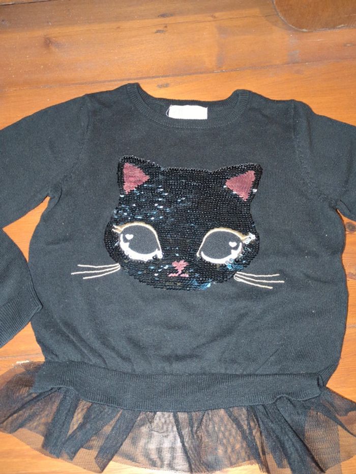 Pull chat noir sequins strass halloween tulle fille 4-6 ans h&m - photo numéro 1