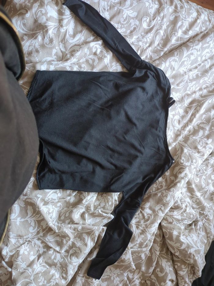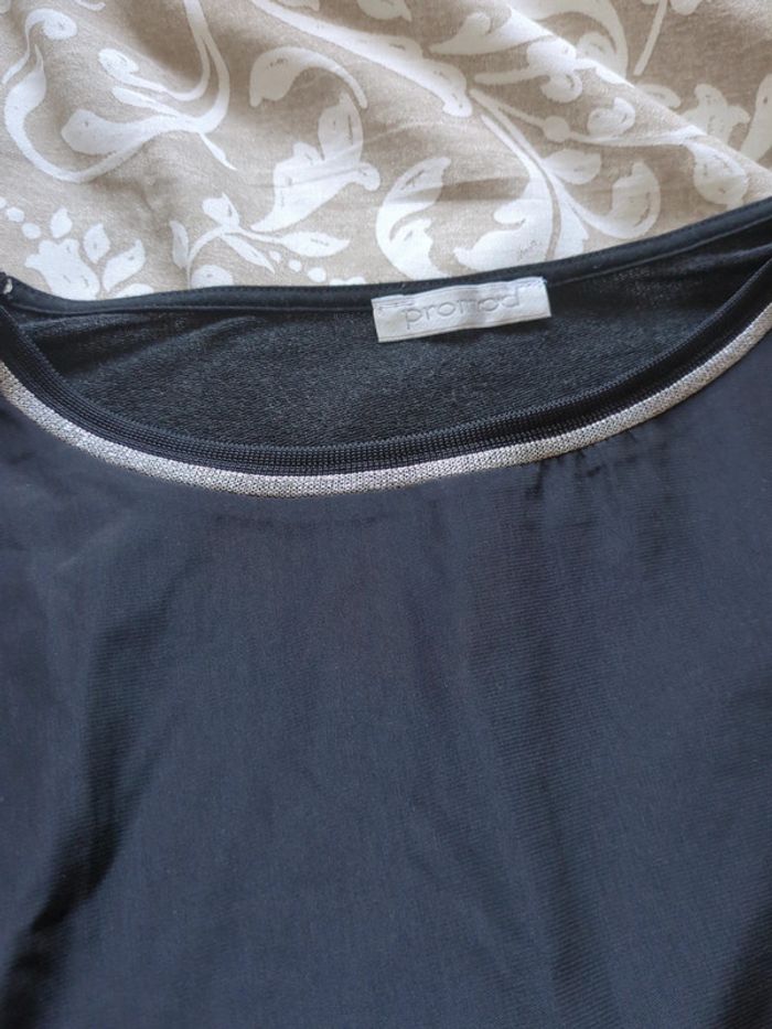T-shirt Promod noir L col argent paillettes sportwear neuf élégant